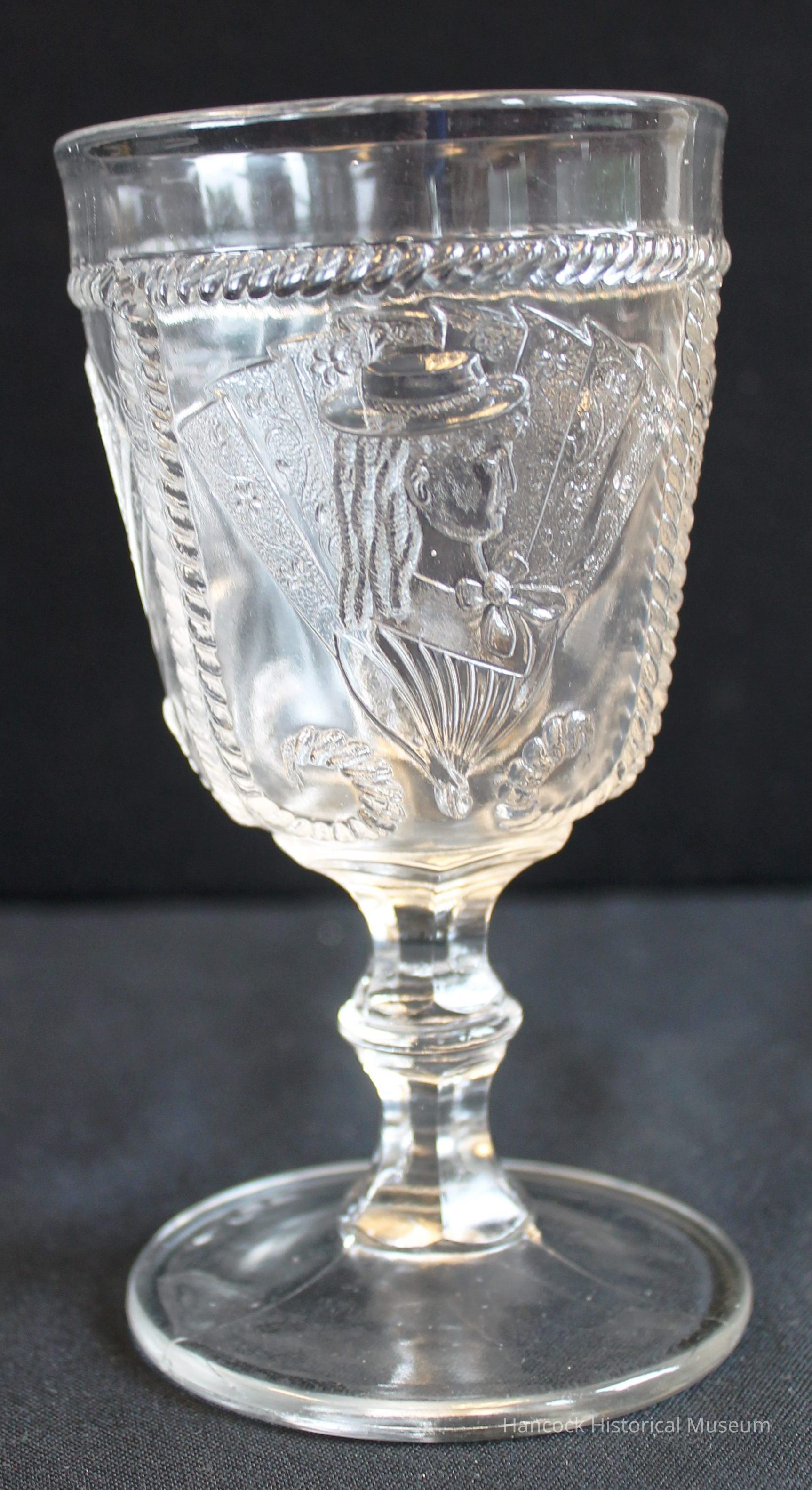 6" clear glass Girl with Fan goblet from Bellaire Goblet Co, Findlay, Oh.