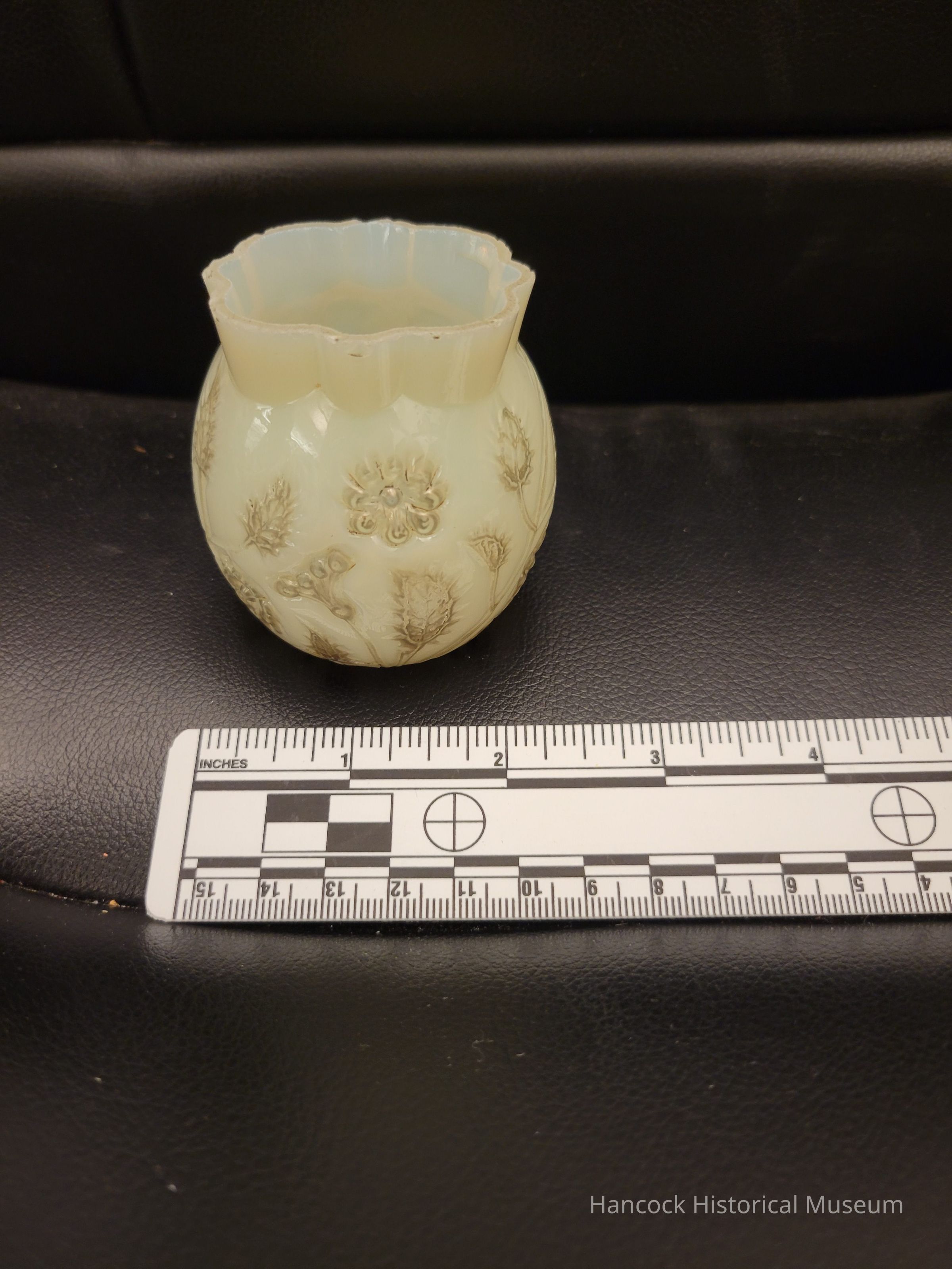 3" silver onyx toothpick holder from Dalzell Gilmore & Leighton Glass Co, Findlay, Oh.