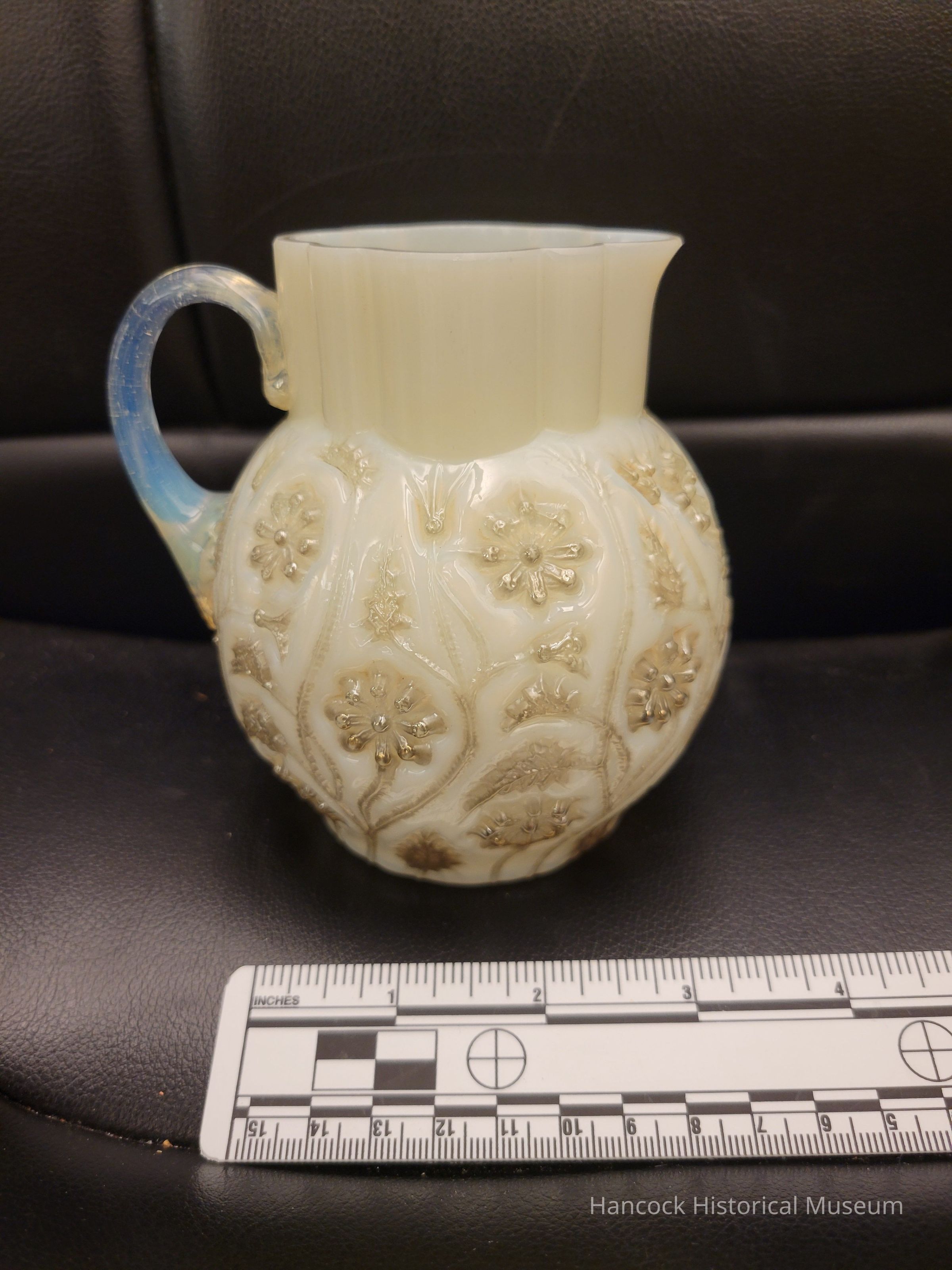 5" silver onyx cream pitcher from Dalzell Gilmore & Leighton Glass Co, Findlay, Oh.