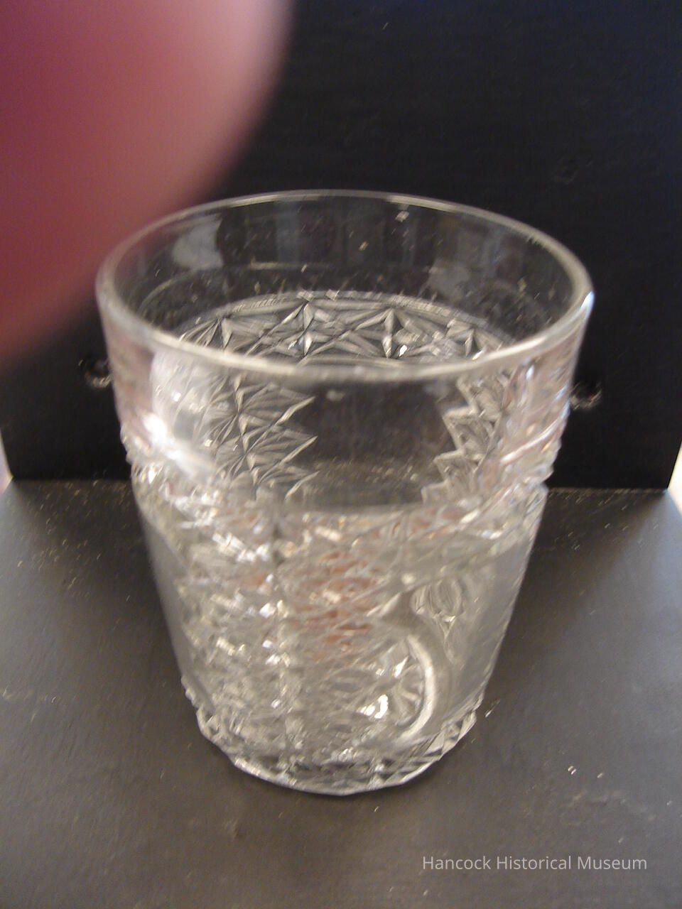 4" clear glass Mitered Frieze tumbler from Columbia Glass Co, Findlay, Oh.