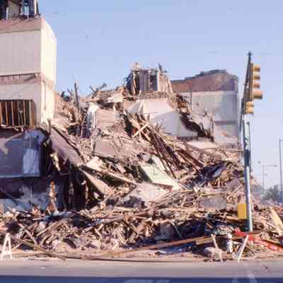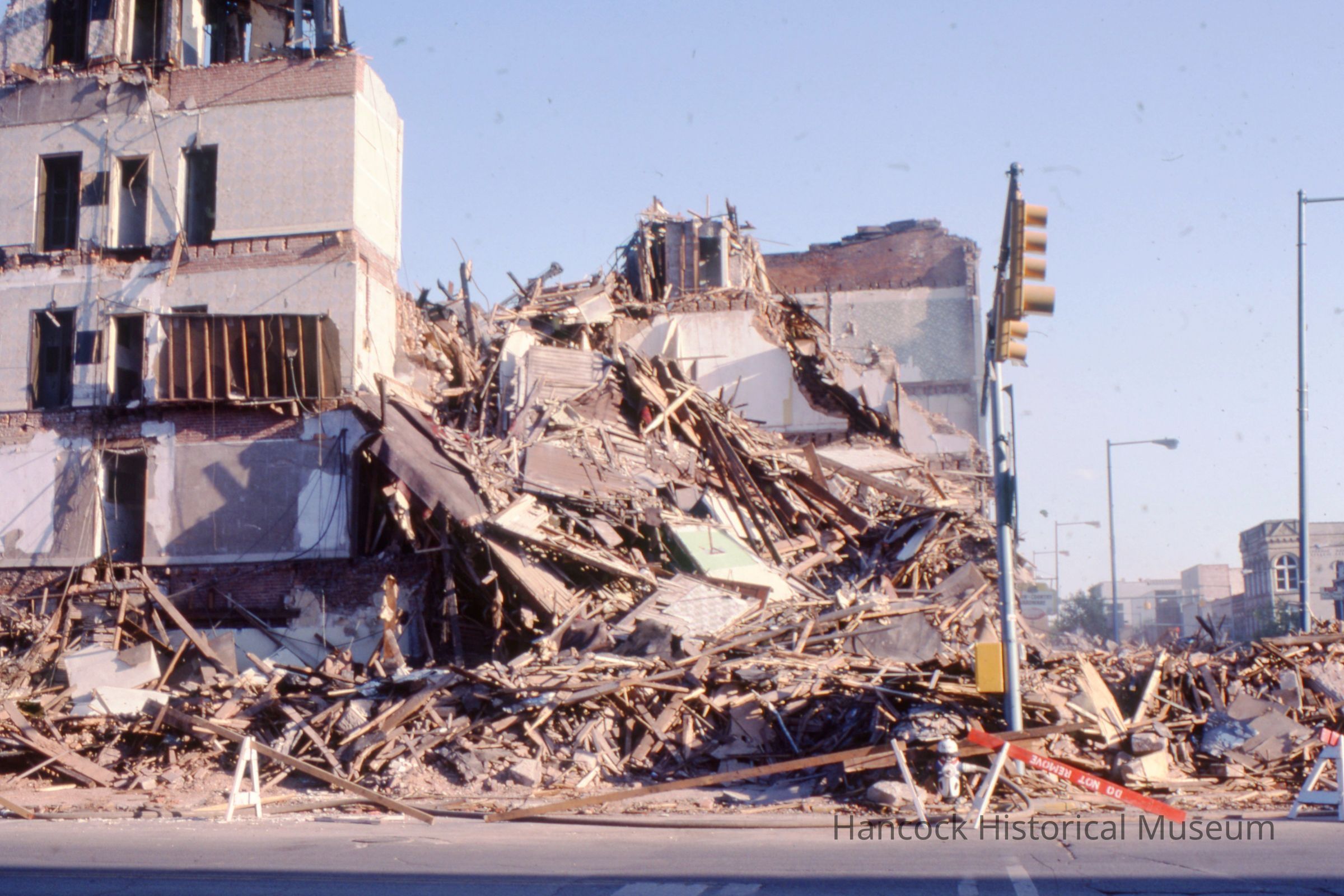 Color slide taken by Don Smith of the Demolition of the Phoenix Hotel, 300 Block of South Main Street June 5, 1978