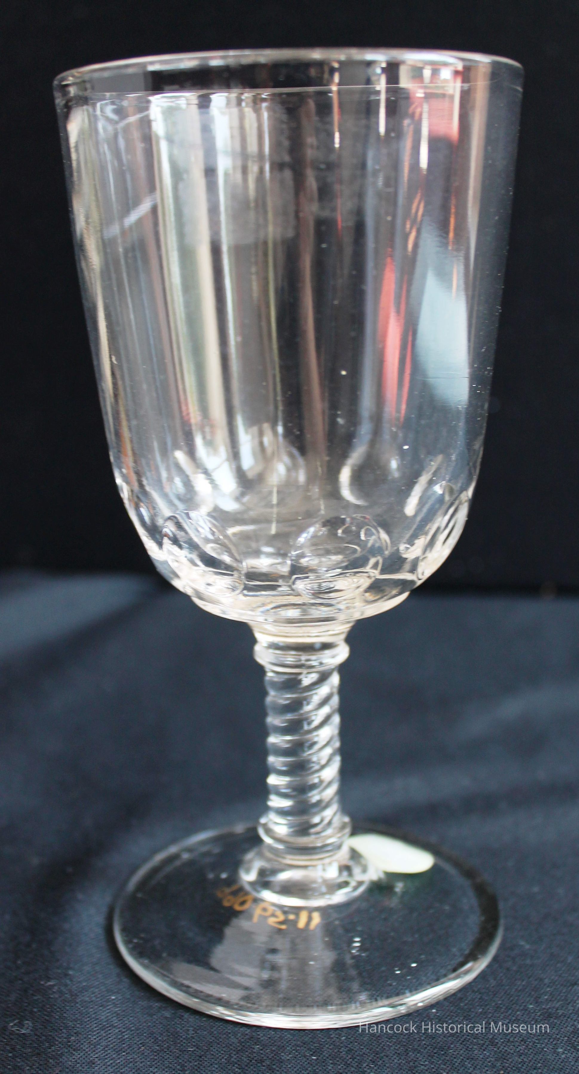 6" clear glass Thumbprint & Twist Stem pattern goblet from Bellaire Goblet Co, Findlay, Oh.