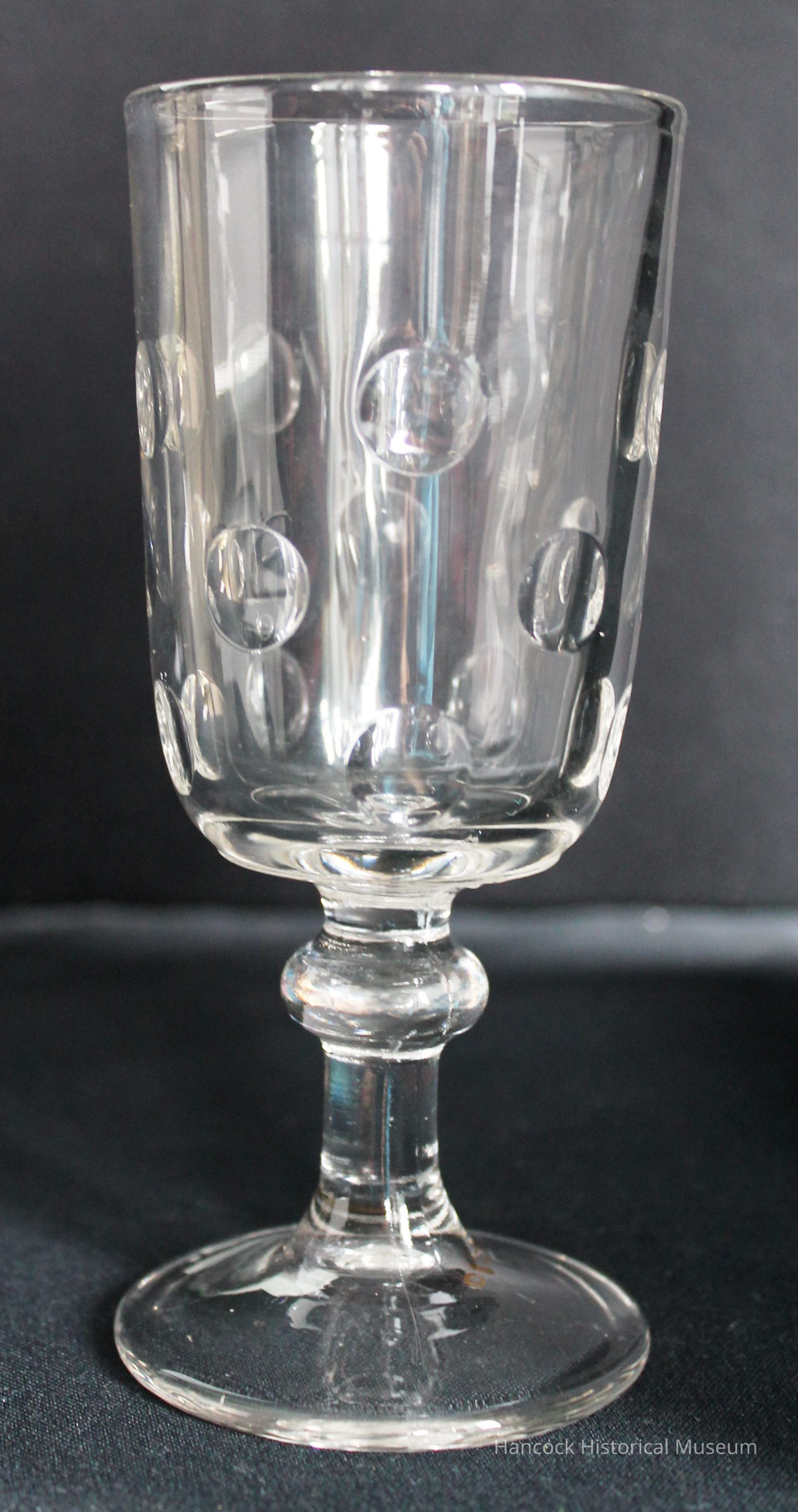 6" clear glass goblet Doderly Thumbprint pattern from Bellaire Goblet Co, Findlay, Oh.
