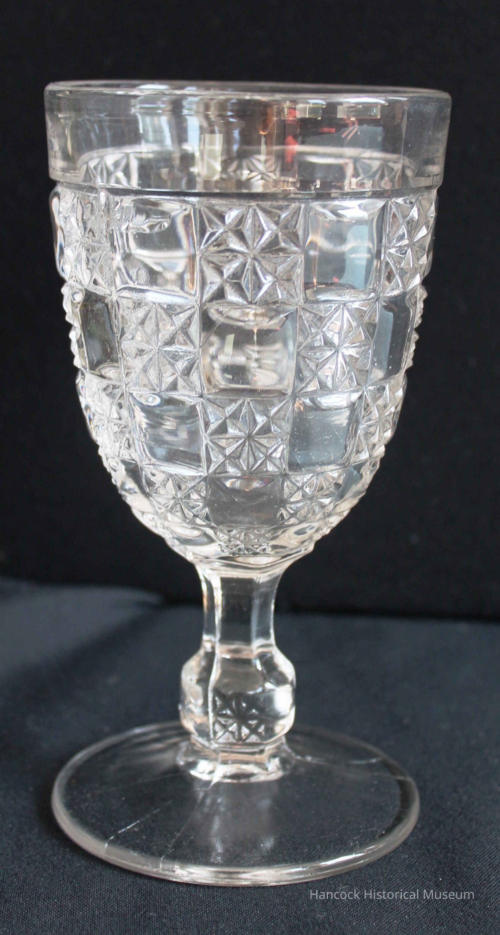 6" clear glass goblet Milton Pattern from Bellaire Goblet Co, Findlay, OH.