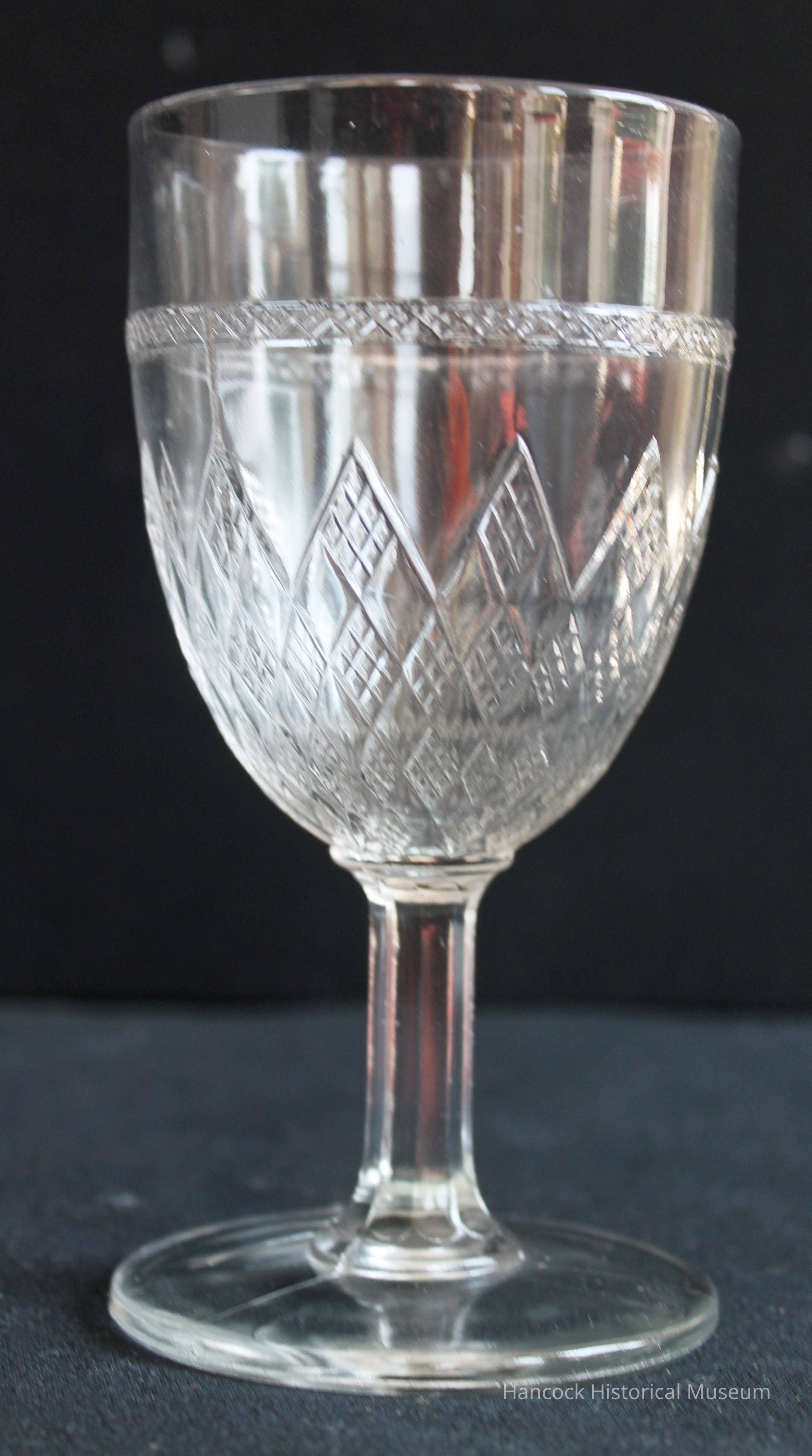 6" clear glass goblet Graduated Diamonds pattern from Bellaire Goblet Co, Findlay, Oh.