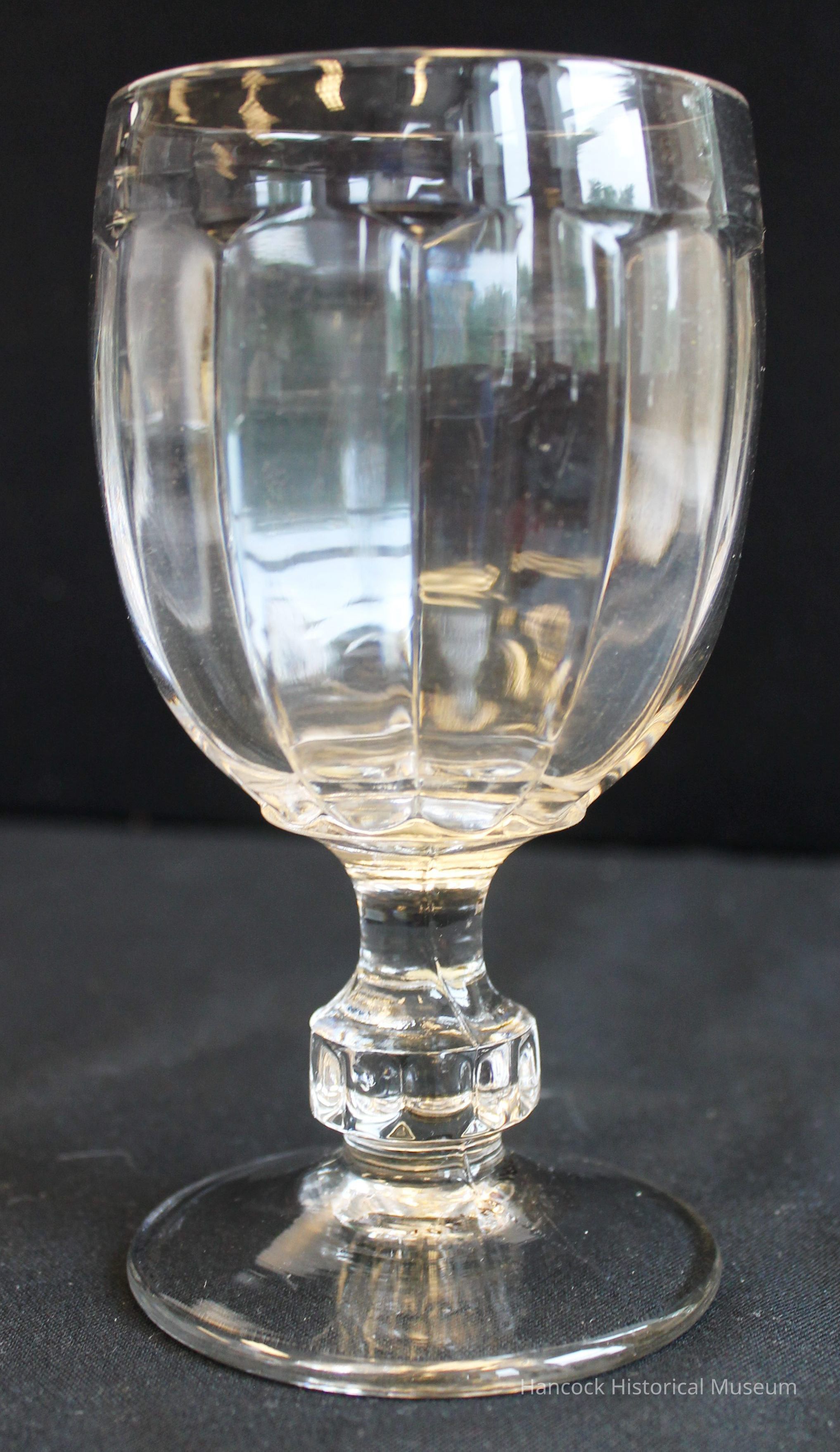 6" clear glass goblet Janssen pattern from Bellaire Goblet Co, Findlay, Oh.