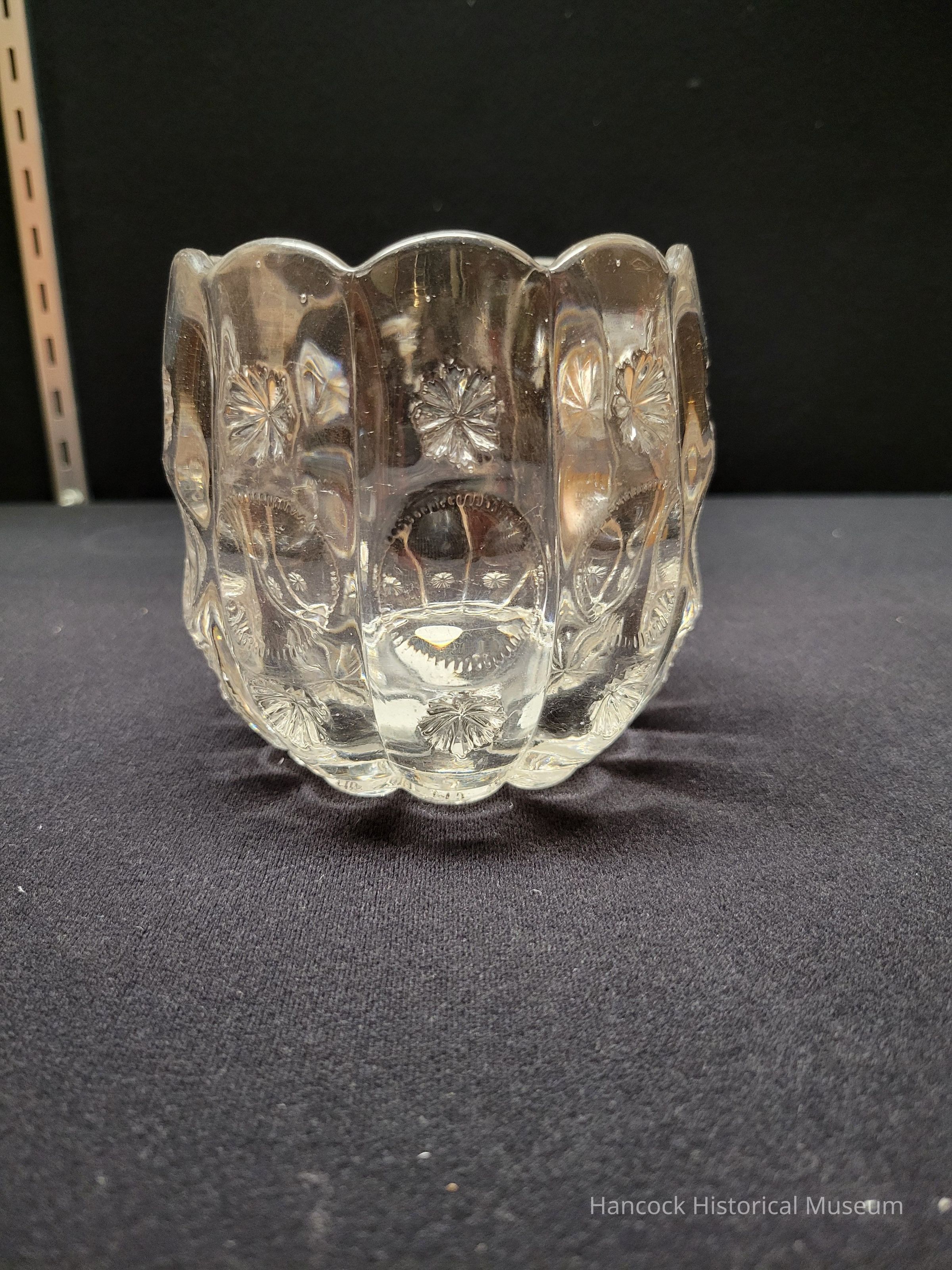 4" clear glass Priscilla Pattern spooner open from Dalzell Gilmore & Leighton Glass Co, Findlay, Oh.Collection
