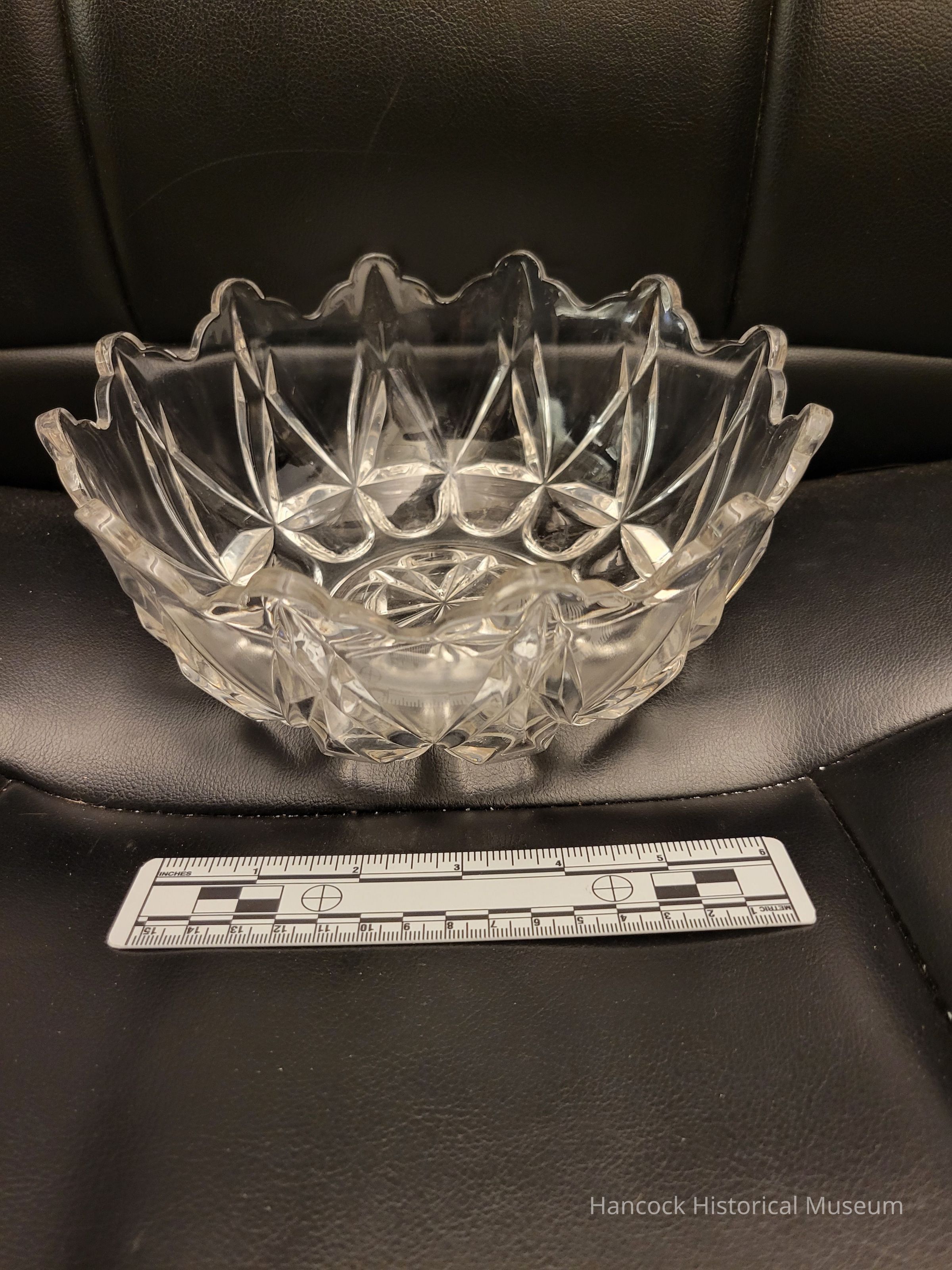 3 1/2" x 8" large clear glass bowl from Columbia Glass Co, Findlay, Oh Pointed Jewel pattern.