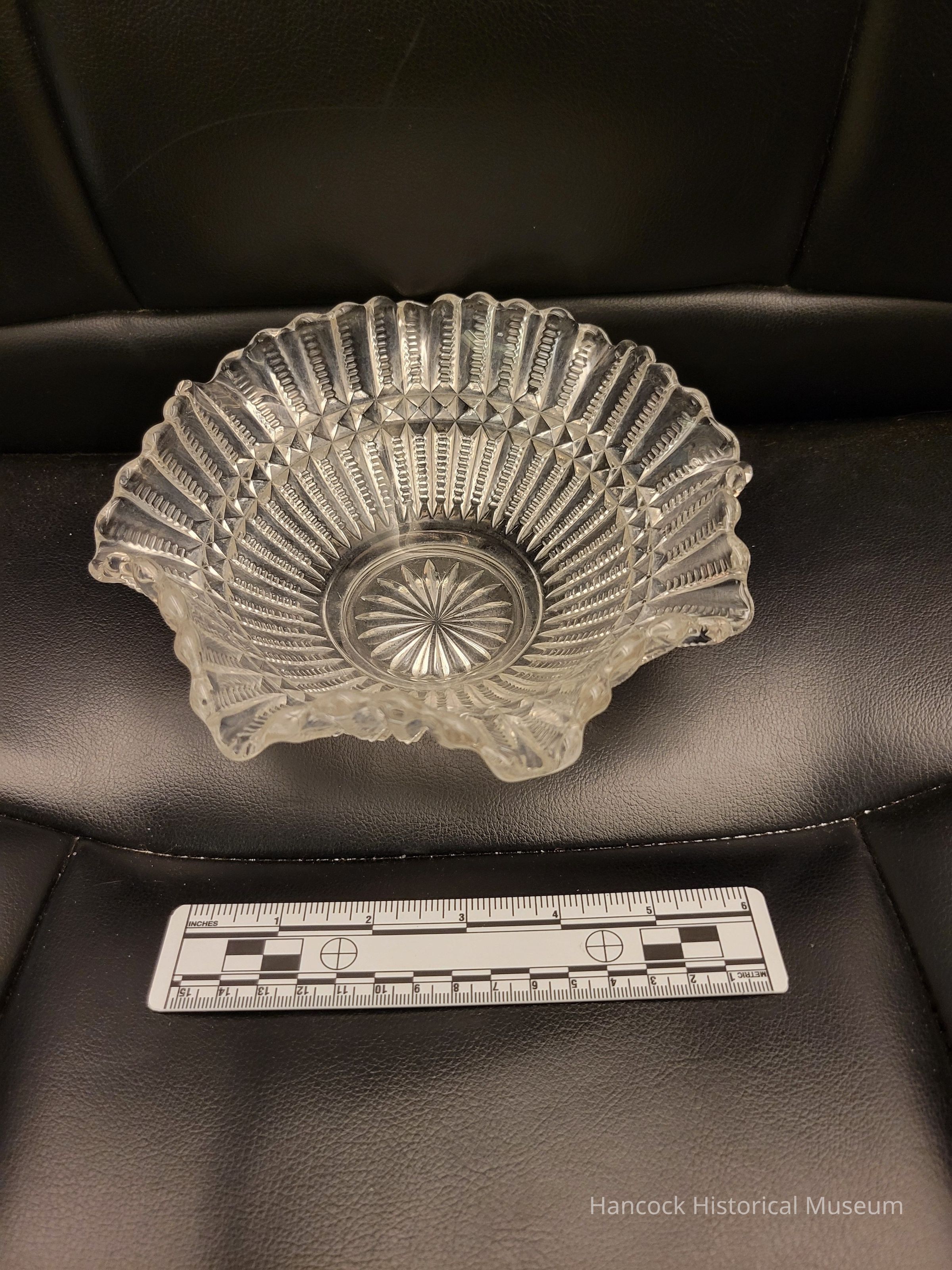 3" tall by 7 1/2" round File pattern bowl from Columbia Glass Co, Findlay, Oh with small scalloped edges undated.Collection