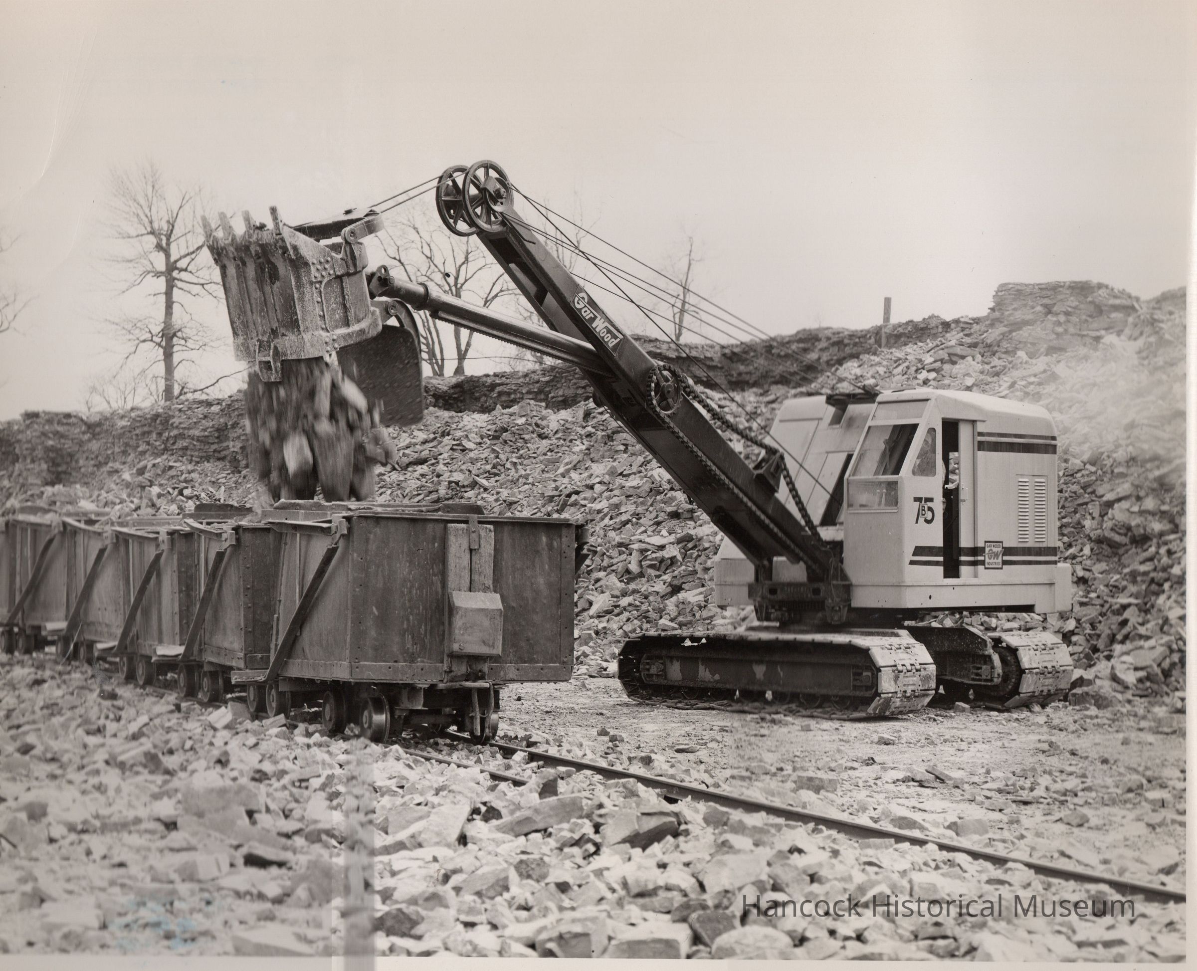8 x10 b/w photo of a ditching machine loading railcar built by buckeye traction ditcher Co, 200 Crystal Ave, Findlay, Oh undated.Collection