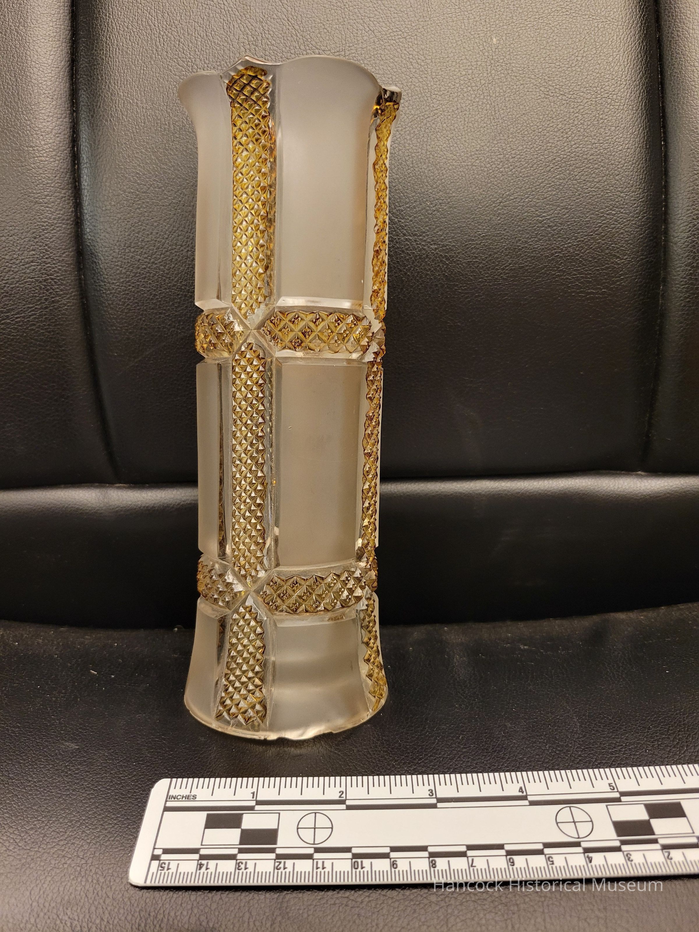 8" Ambrette vase with fluted and serrated top edge from Dalzell Gilmore & Leighton Glass Co, Findlay, Oh undated.
