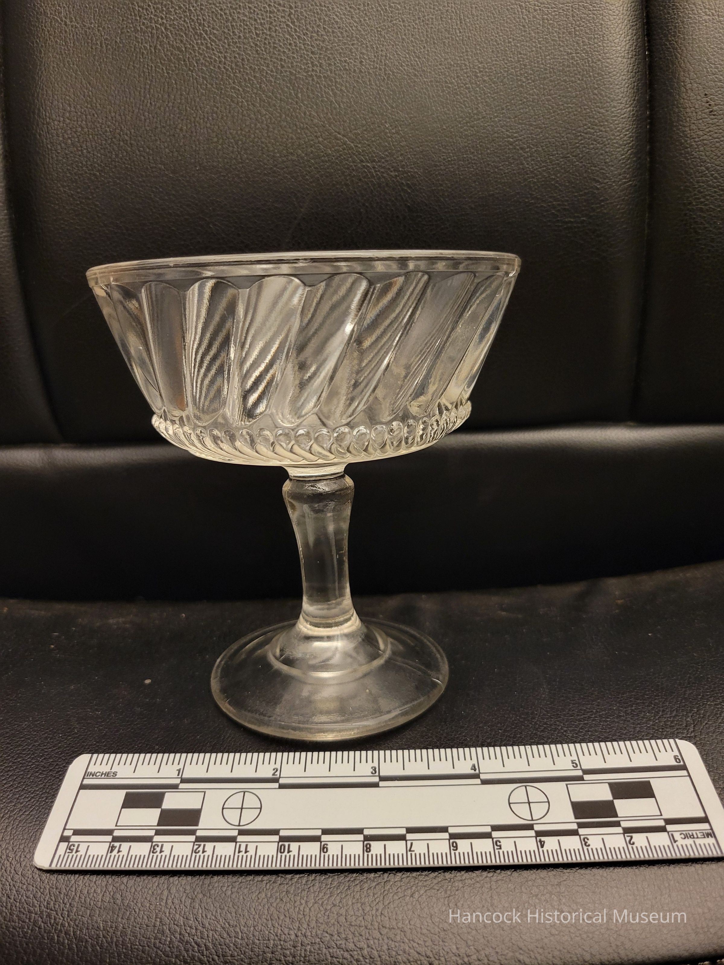 5" tall 4 3/4" round stemmed jelly compote of Swirl & Cable pattern from Dalzell Gilmore & Leighton Glas Co, Findlay, oh. undateddCollection