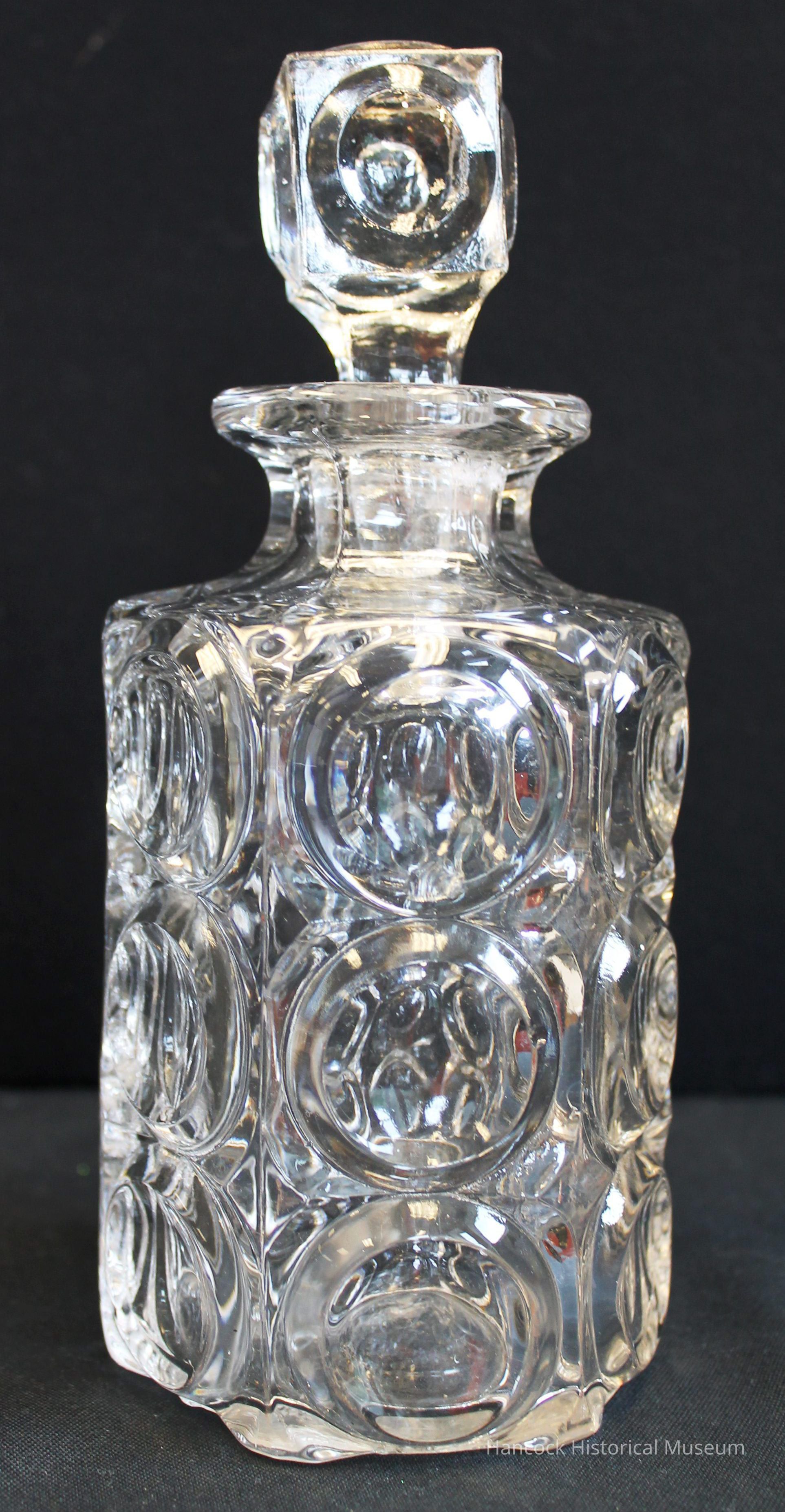 6" tall 6 sided cologne bottle with Giant Bullseye pattern from Bellaire Goblet Company, Findlay oh with 2" tall square stopper in Giant Bullseye pattern .Collection