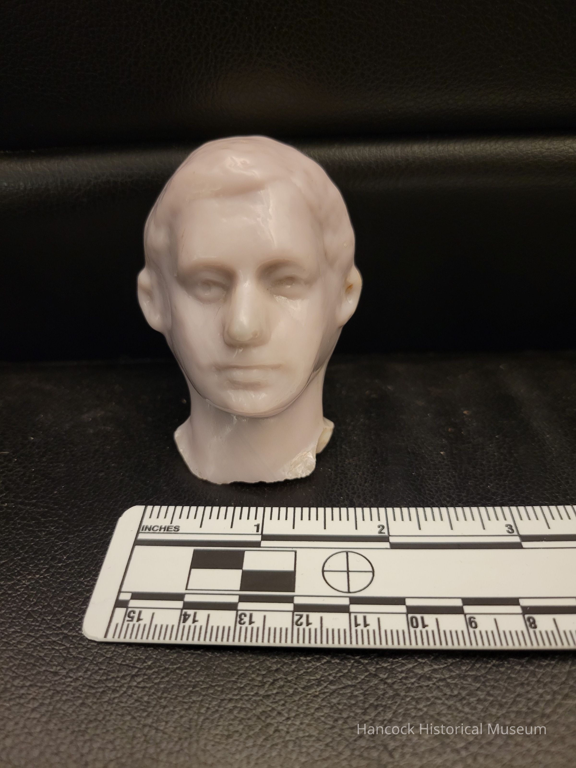 3" tall lavender glass head from a Fitzsimmons bottle from Dalzell Gilmore & Leighton Glass Co, Findlay, Oh broken off at base of neck, undated.Collection
