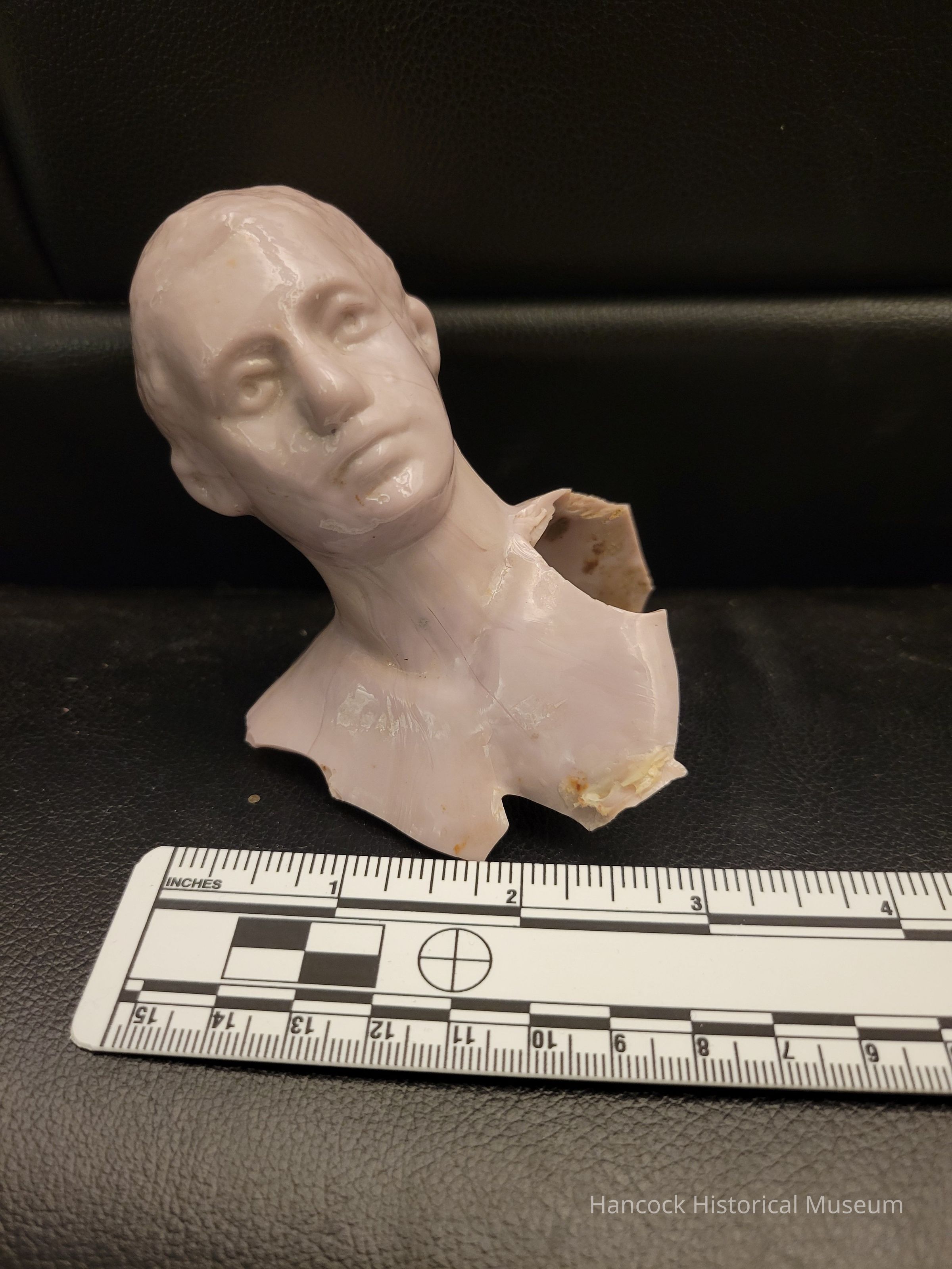 4" shard containing the lavender glass head of a Fitzsimmons bottle from Dalzell Gilmore & Leighton Glass Co, Findlay, Oh broken off at chest, undated.Collection