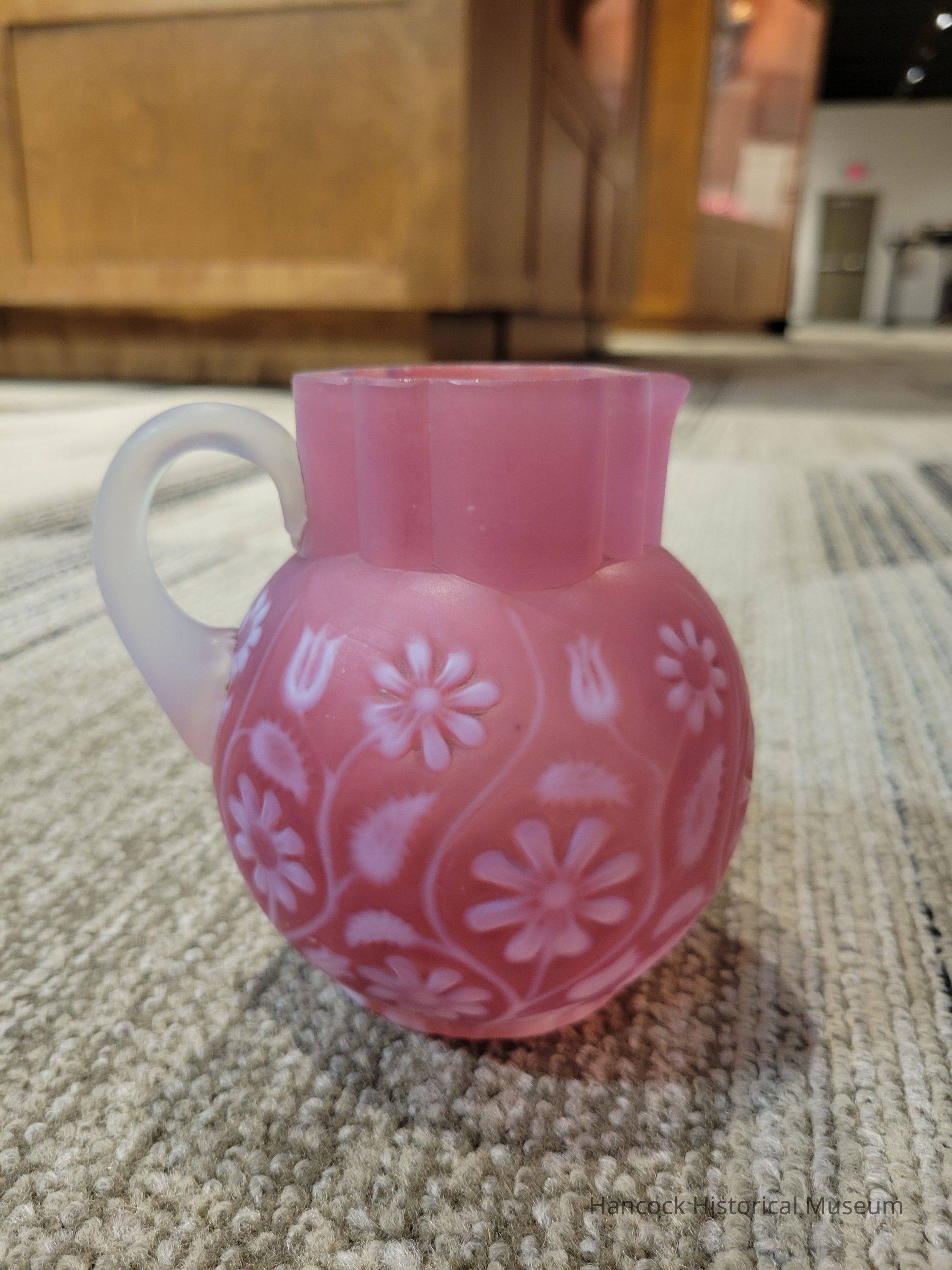 Pink Floradine Cream Pitcher from Dalzell Gilmore & Leighton Glass Co, Findlay, Oh.