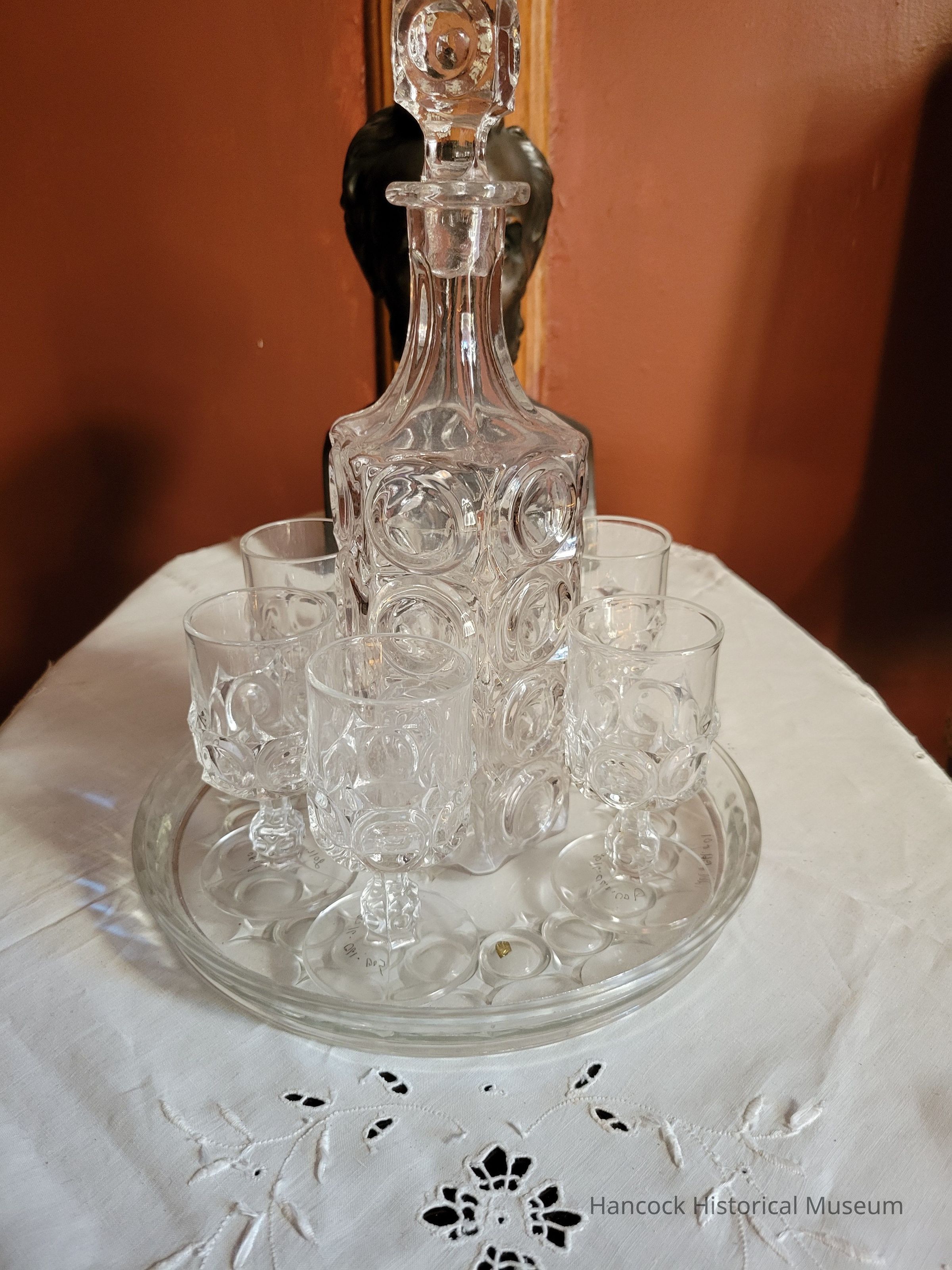 Clear wine glass from Bellaire Goblet Company, Findlay, Oh Bullseye pattern