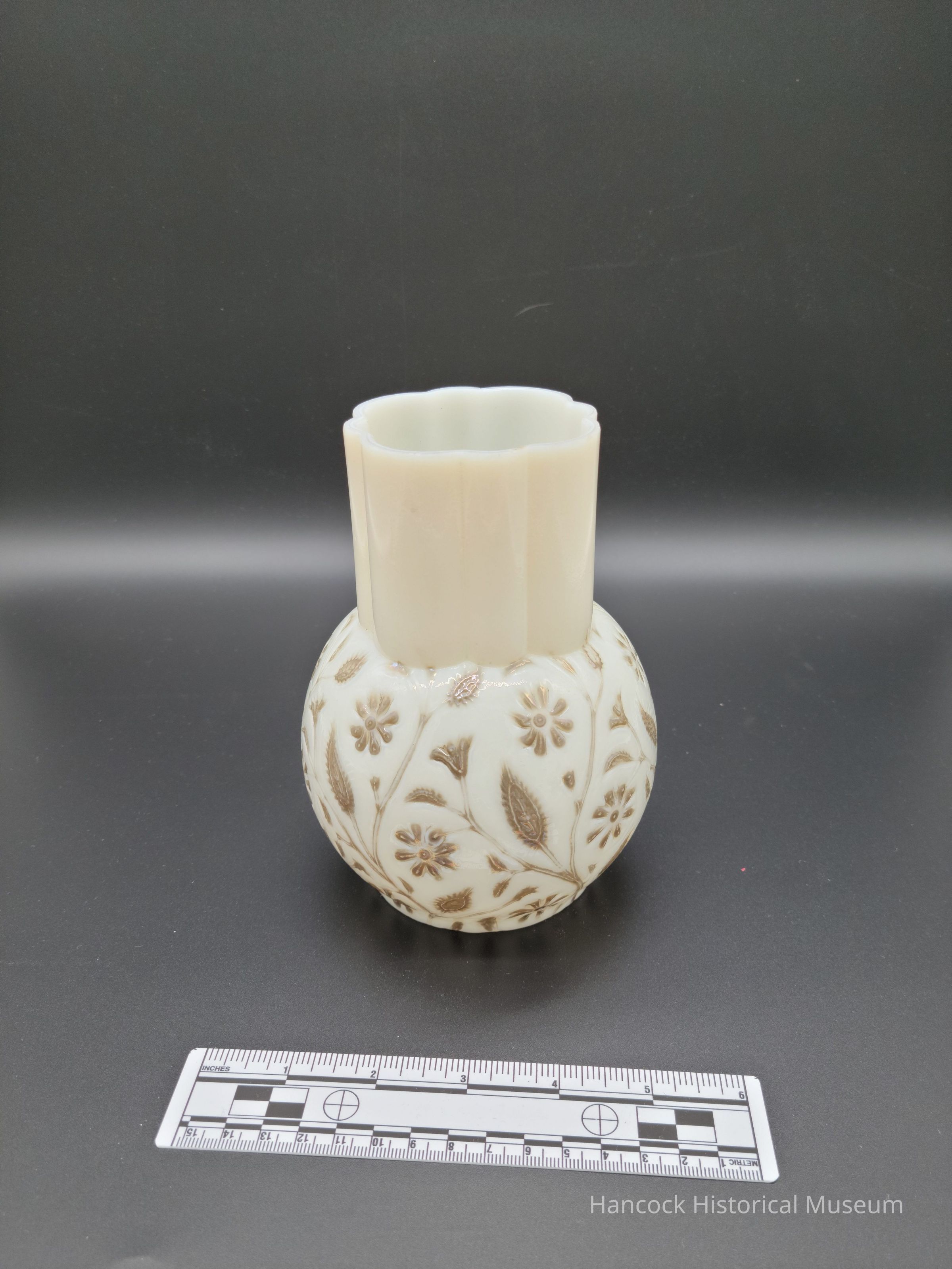 5 x 6 white w/silver Findlay onyx celery from Dalzell Gilmore Leighton Glass Co, Findlay, Oh.