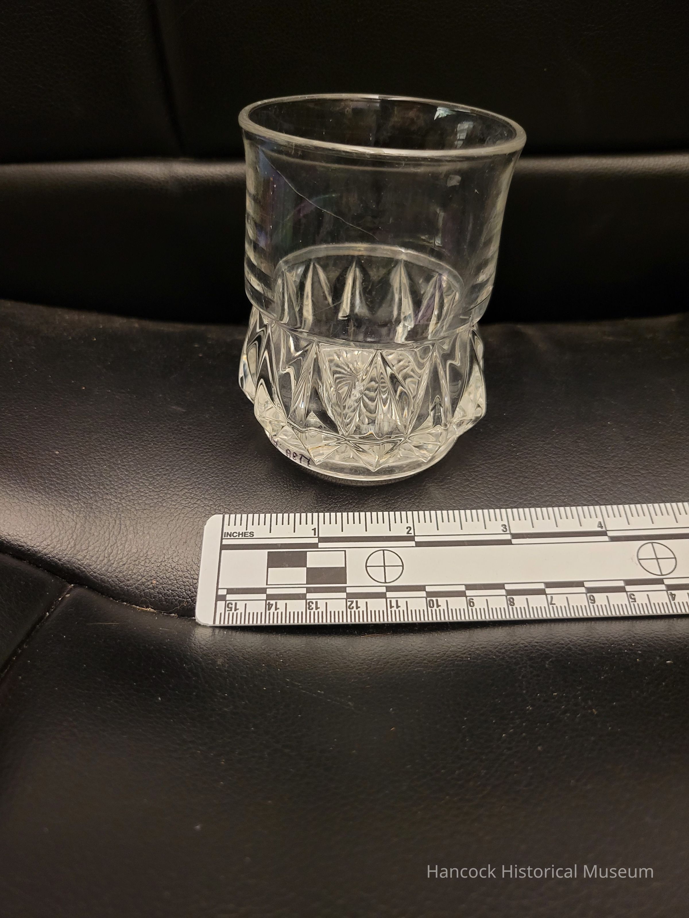 4" clear glass tumbler from Columbia Glass Co, Findlay, Oh Pointed Jewel pattern.