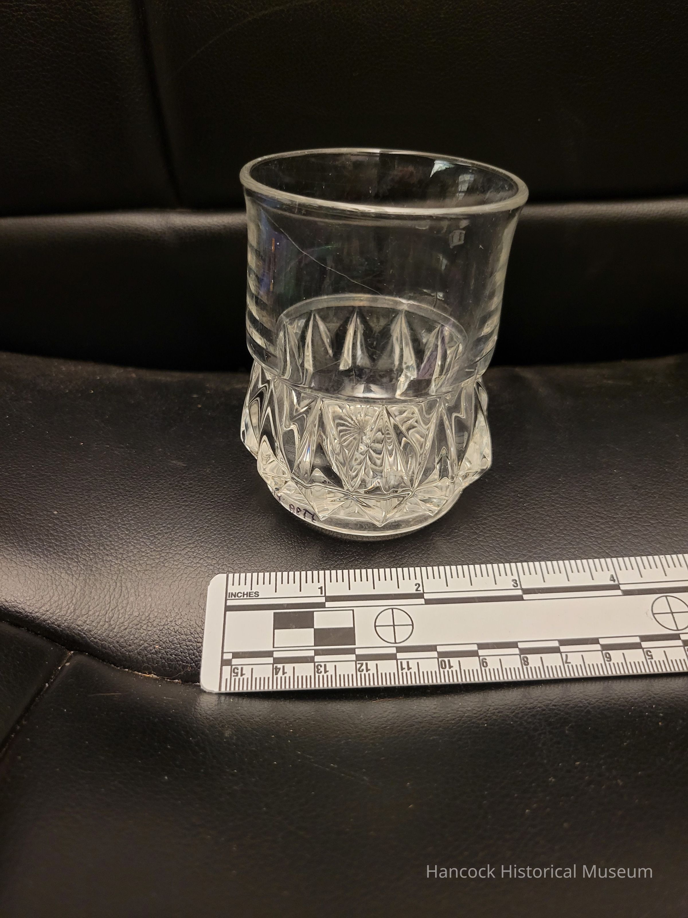 4" clear glass tumbler from Columbia Glass Co, Findlay, Oh Pointed Jewel pattern.