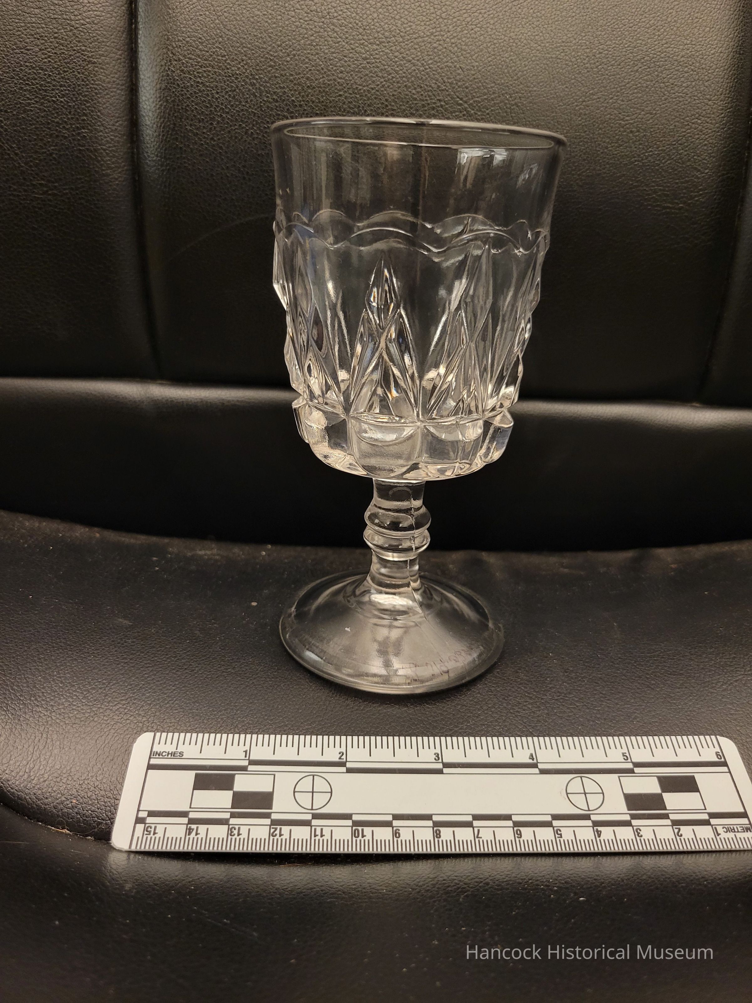 3" round 6" tall clear glass Goblet from Columbia Glass Co, Findlay, Oh Pointed Jewel pattern.