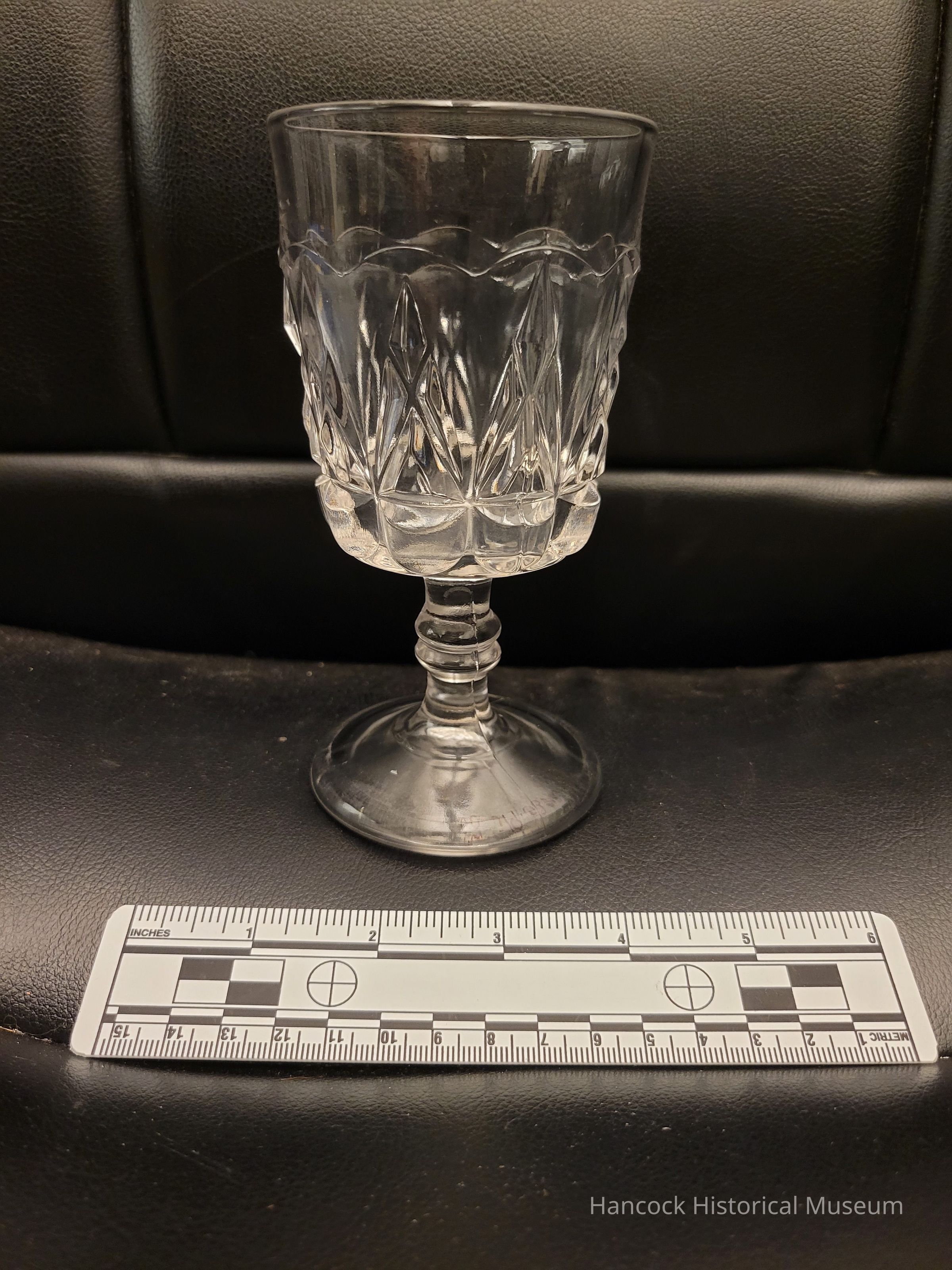3" round 6" tall clear glass Goblet from Columbia Glass Co, Findlay, Oh Pointed Jewel pattern.