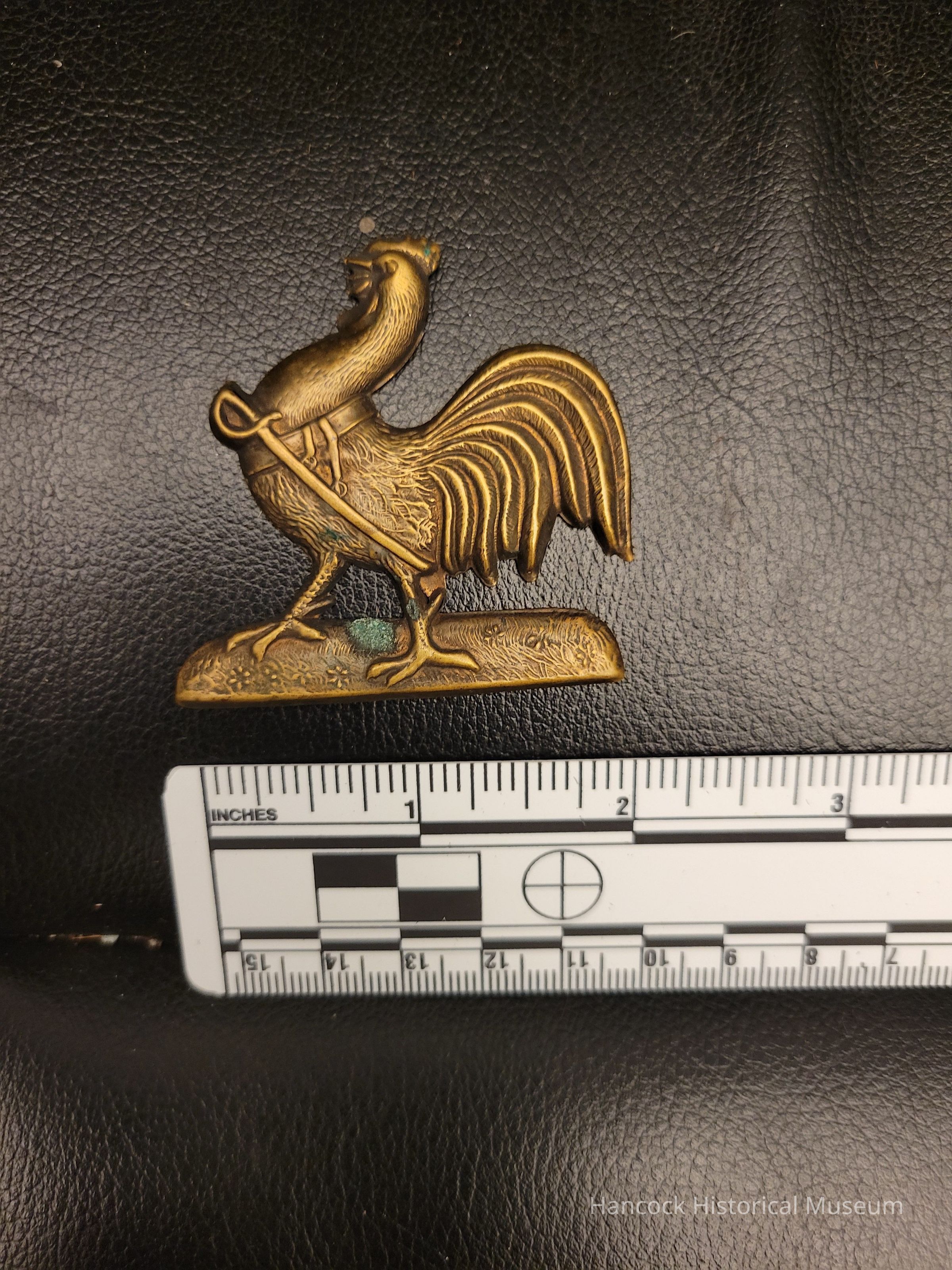 2 x 1 1/4" brass rooster from GAR post of 7th Ohio Volunteer Infantry (OVI).