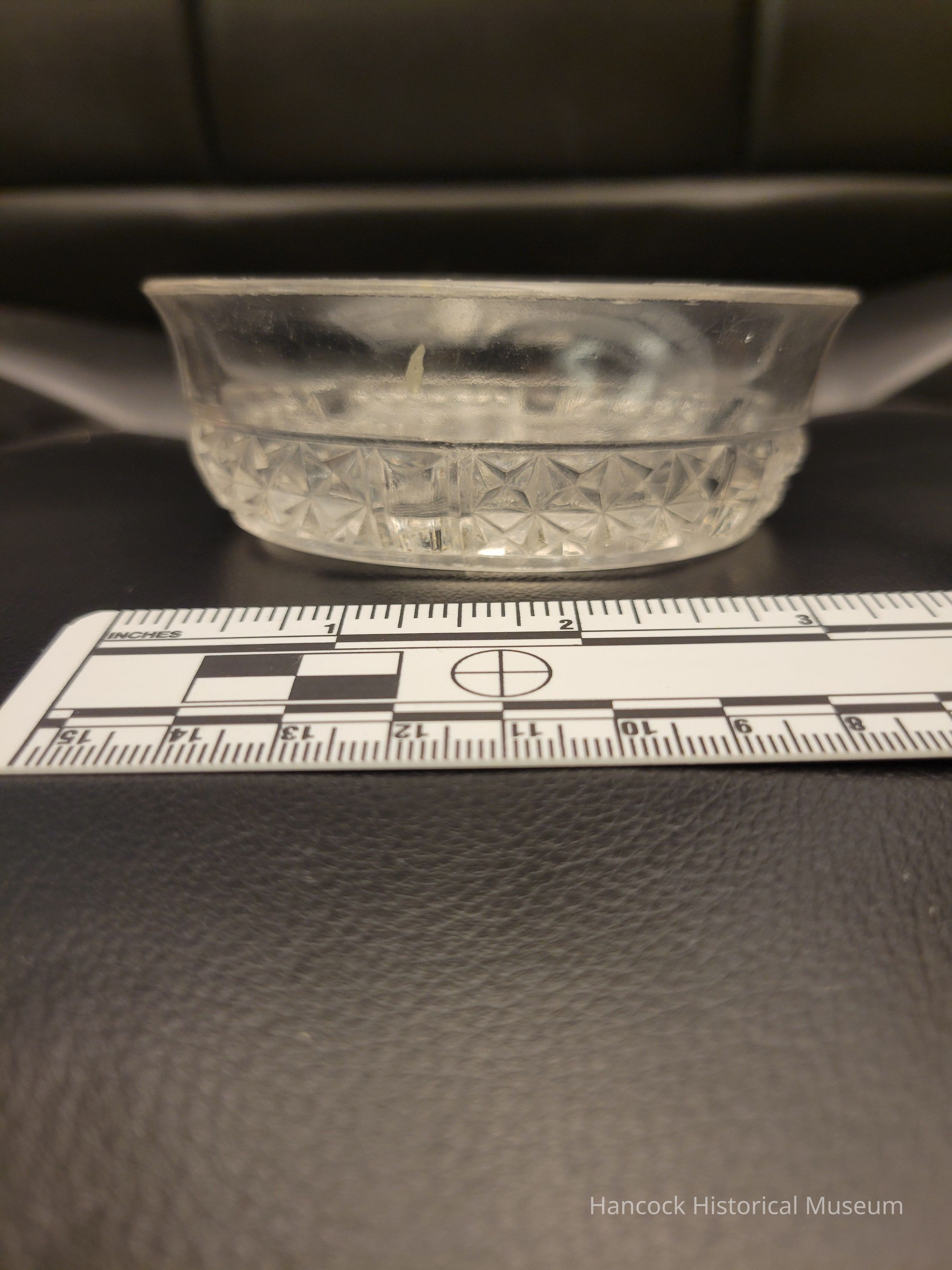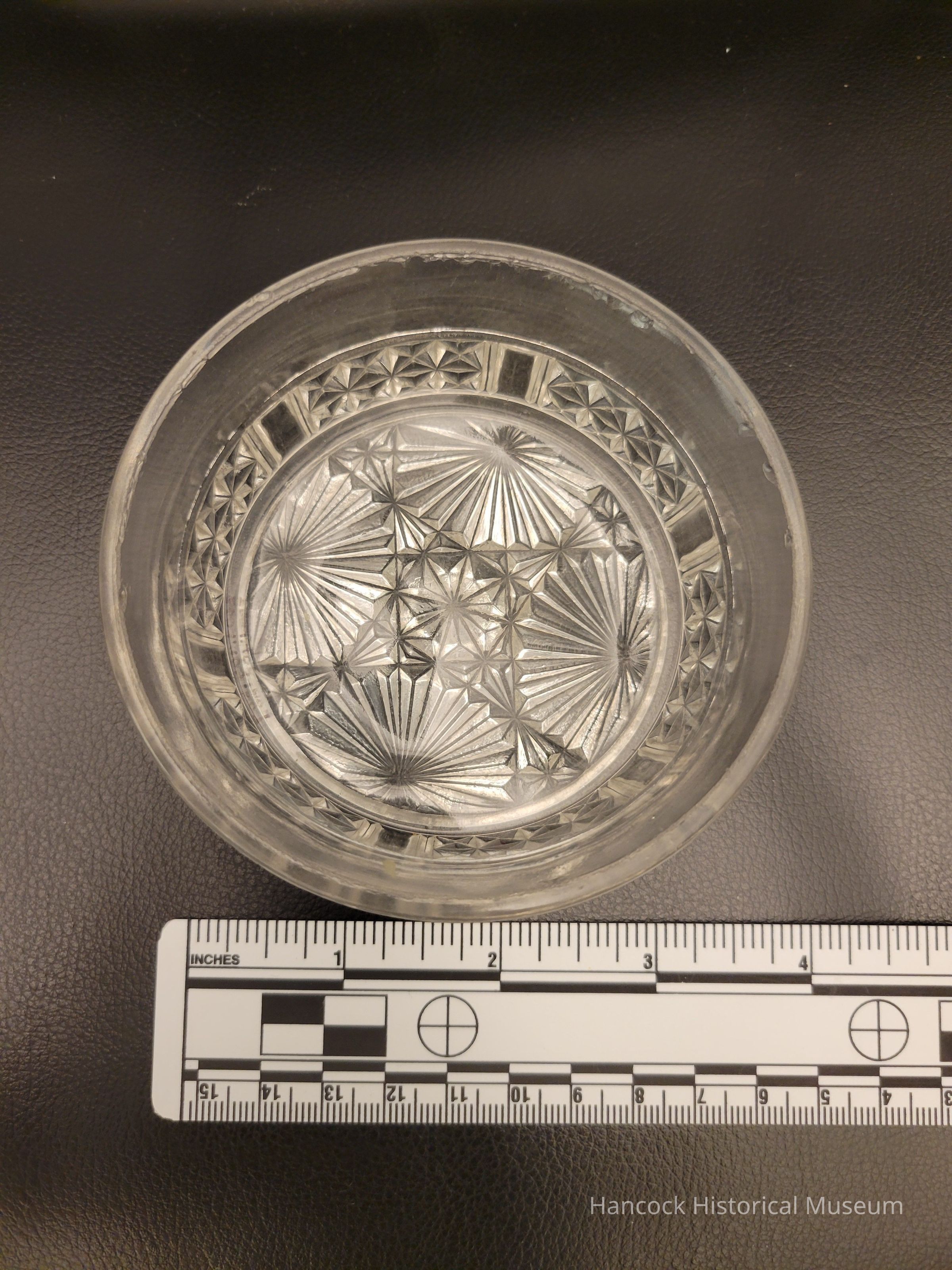 3 1/2 x 4 x 1 1/2" Eight Panel Fine cut W/Fan Cut Sauce Dish by Dalzell Gilmore Glass Co, Findlay, Oh.