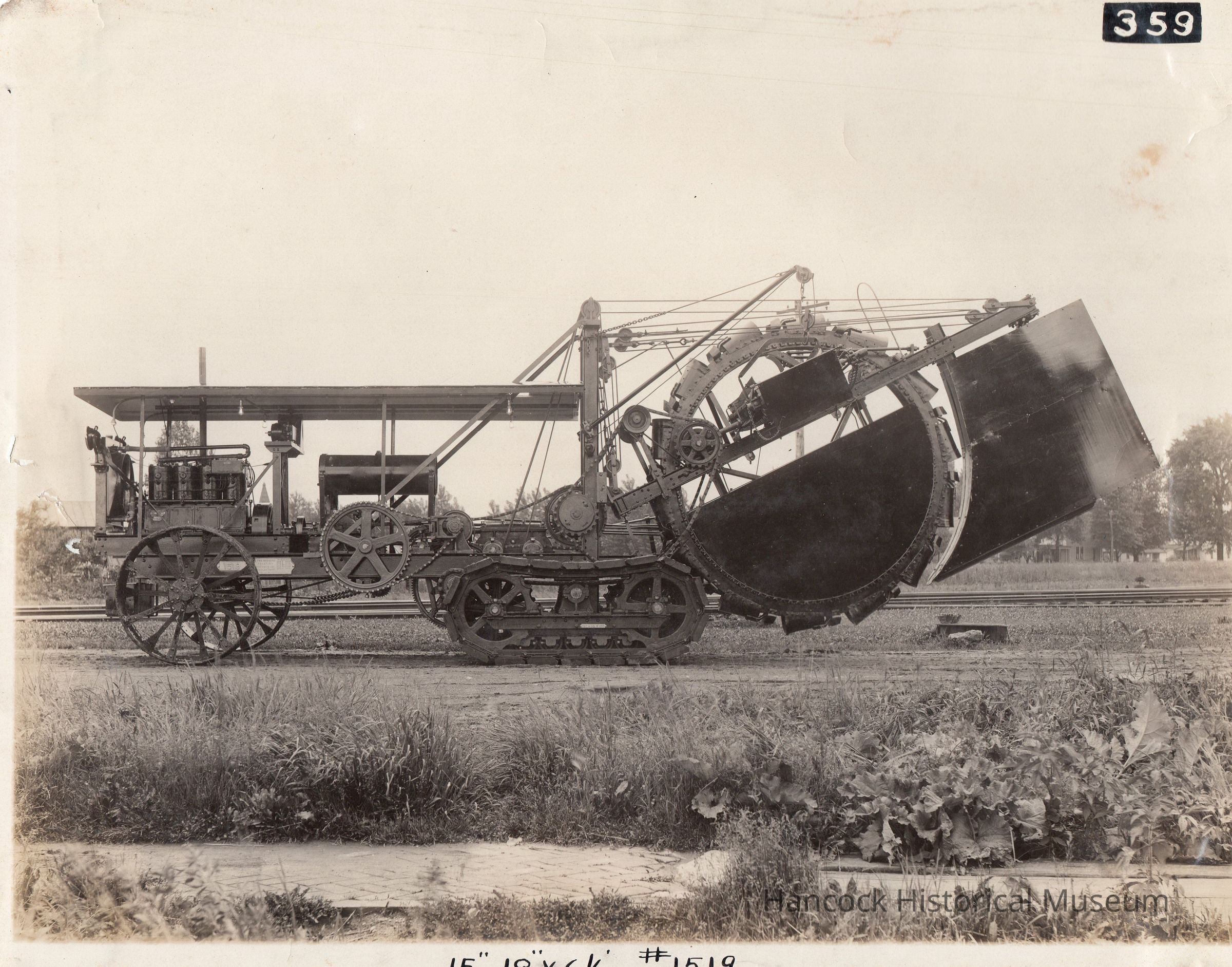 An image of a very large steam powered ditching machine, ready for work.