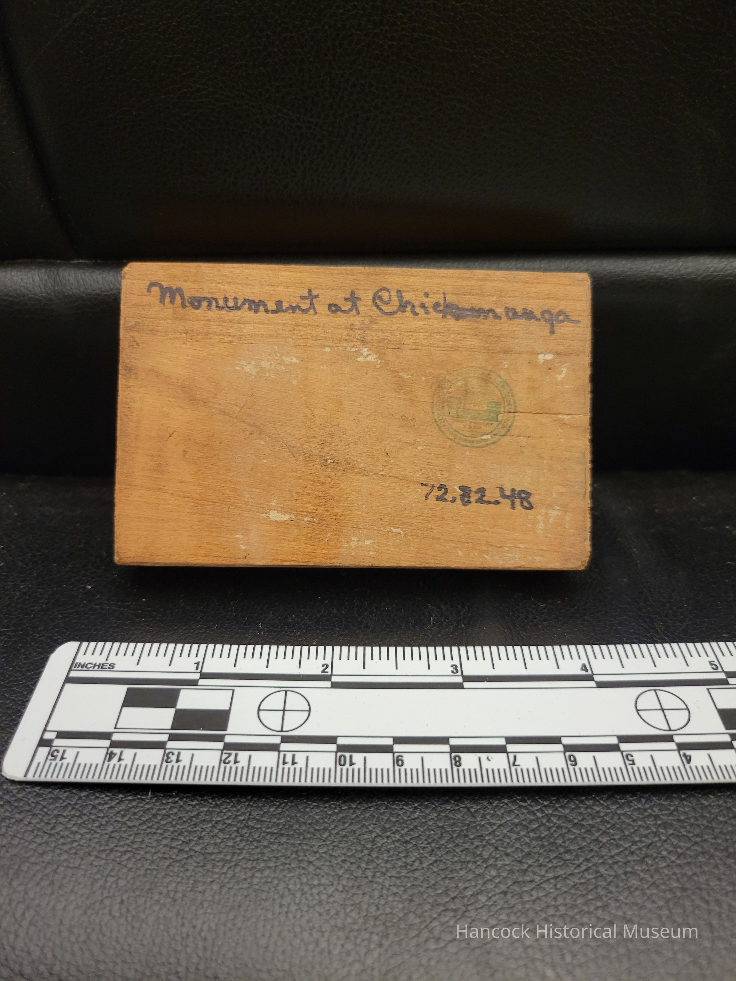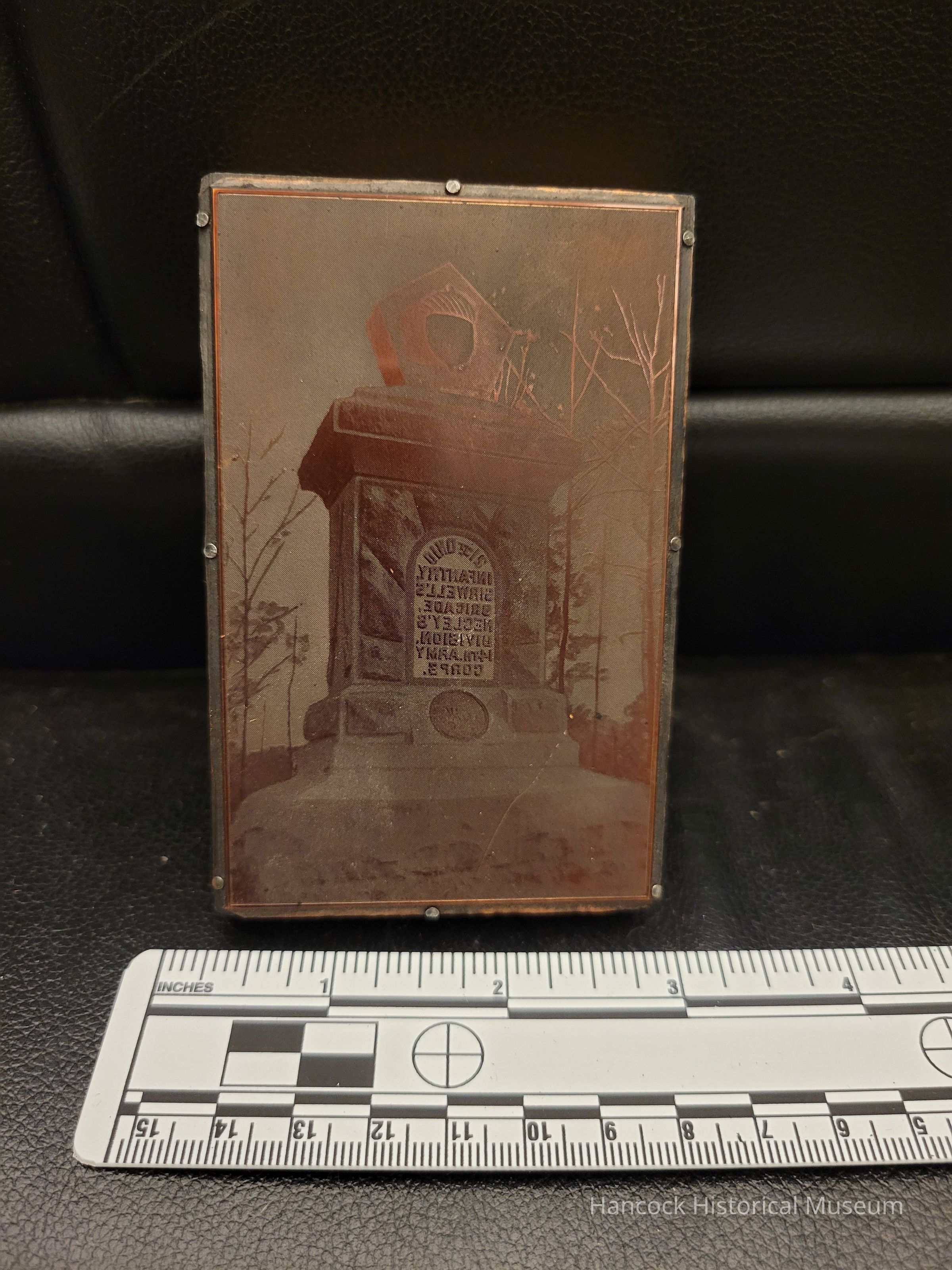 3 x 4 1/2 copper printing plate of monument at Chickamauga to 21st OVI.