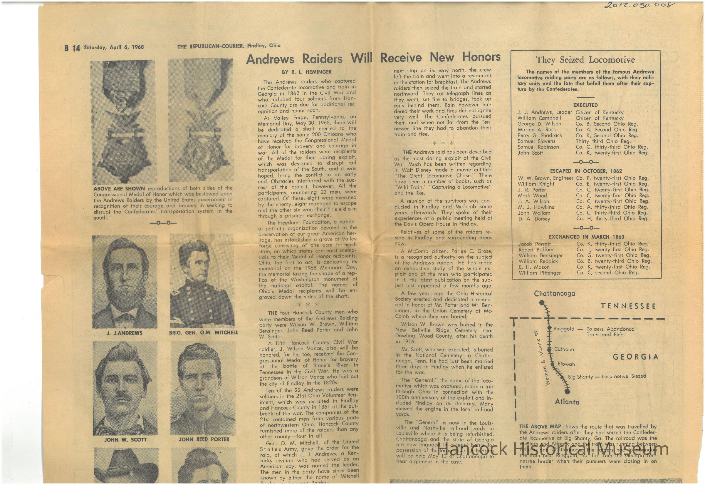 Clipping from the Republican Courier newspaper, Findlay, Oh, Apr 6, 1968 about Andrews Raiders.Collection
