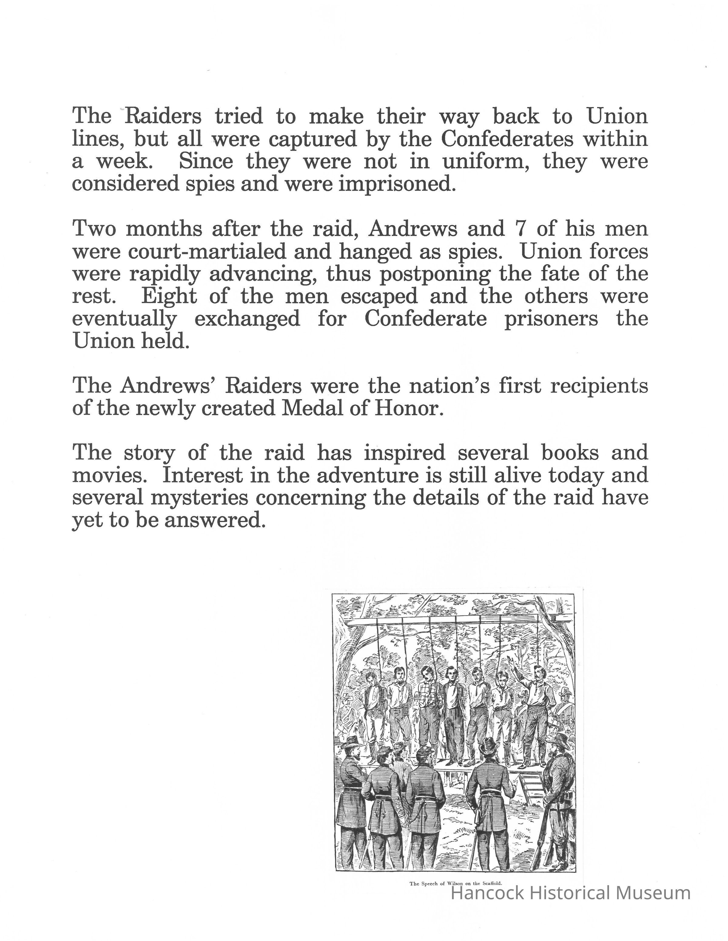 article on the Andrews Raiders and their captured and a brief history.Collection