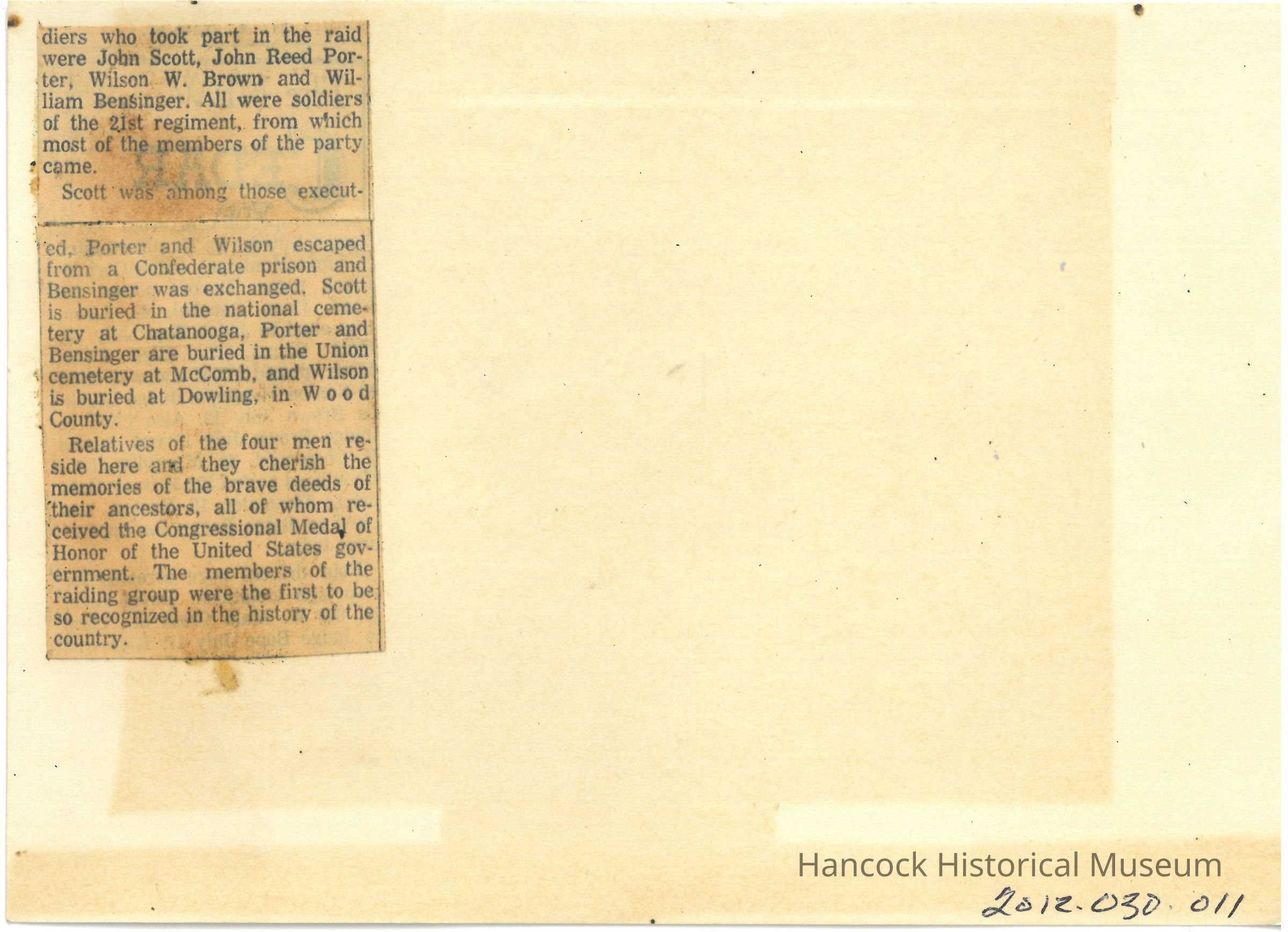 Clipping from The Republican Courier newspaper, Findlay, Oh of unknown date about Andrews Raiders.