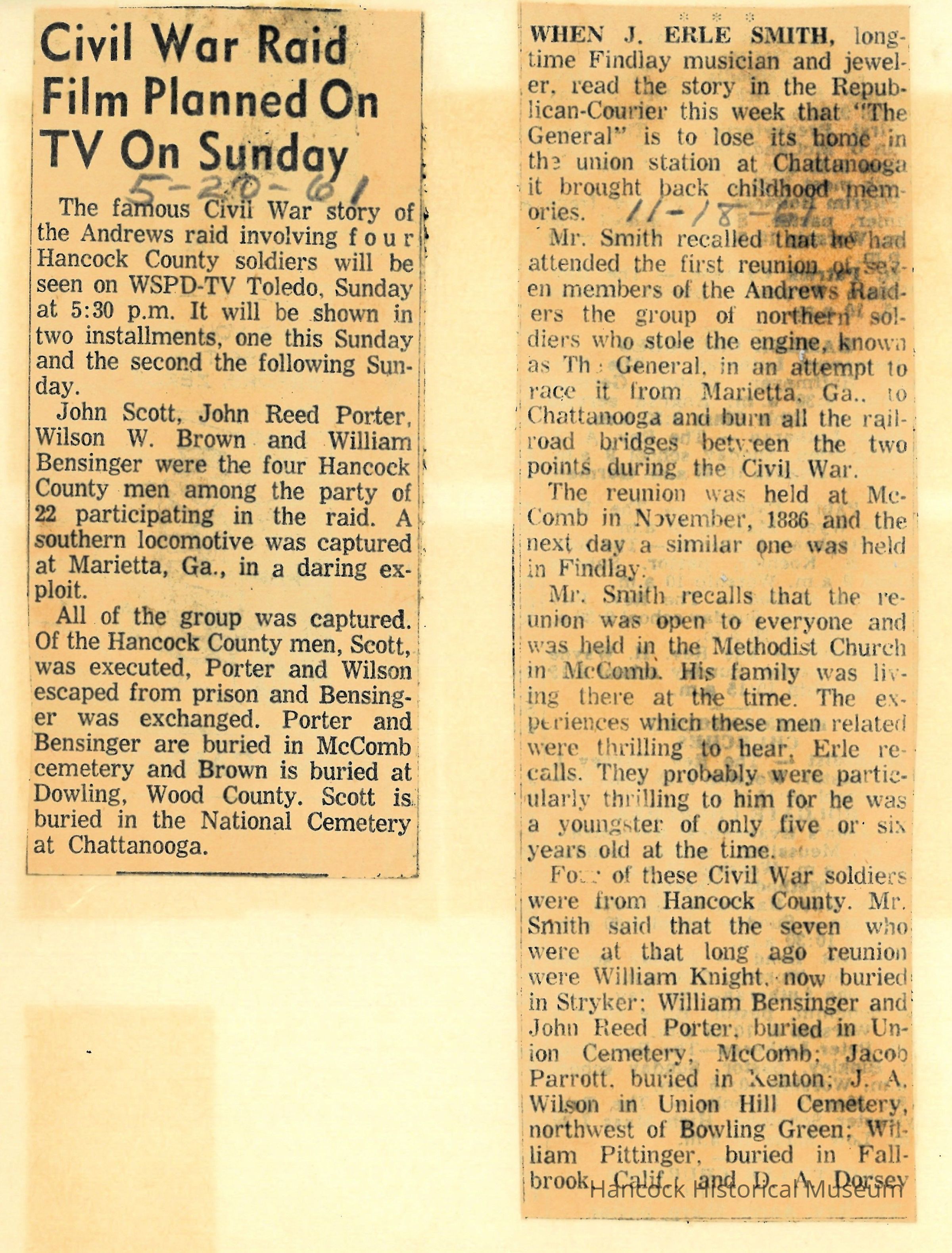 Clipping from the Republican Courier newspaper, Findlay, Oh Apr 20, 1961 & Nov 18, 1961 about Andr3ews RaidersCollection