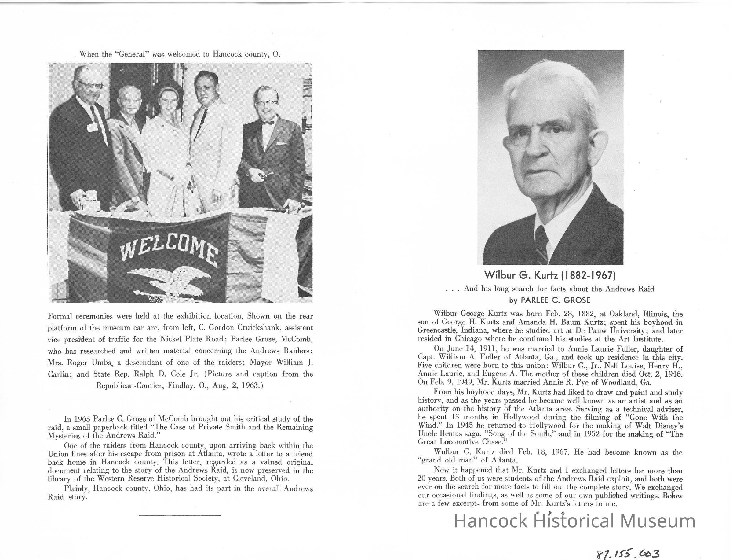 Article reprinted from a book by parlee C Grose on the Andrews raiders, 'Hancock County and the Andrews Raiders'.Collection