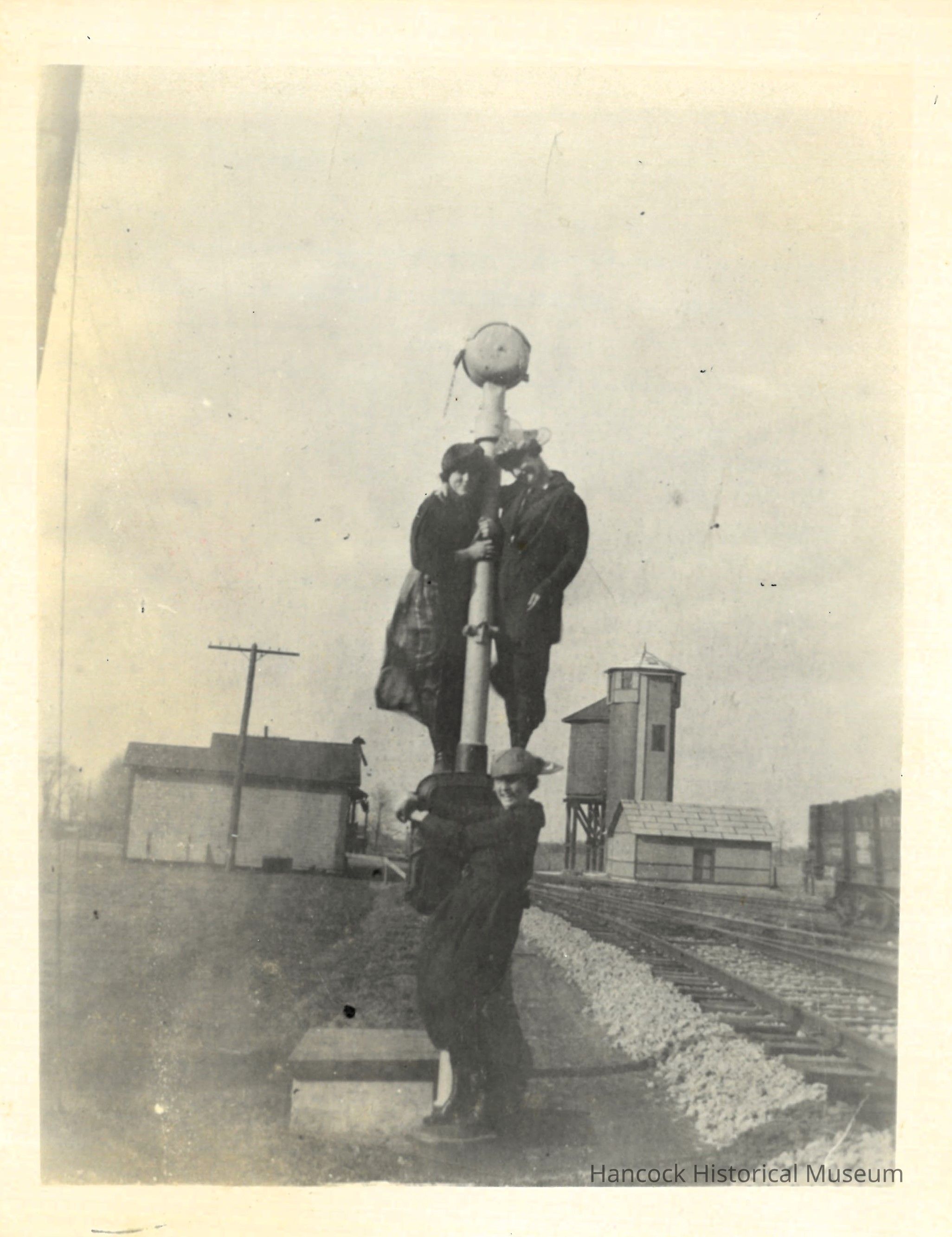photograph of Gwen and LaDonna Dearth and another person at railroad tracks Arlington
