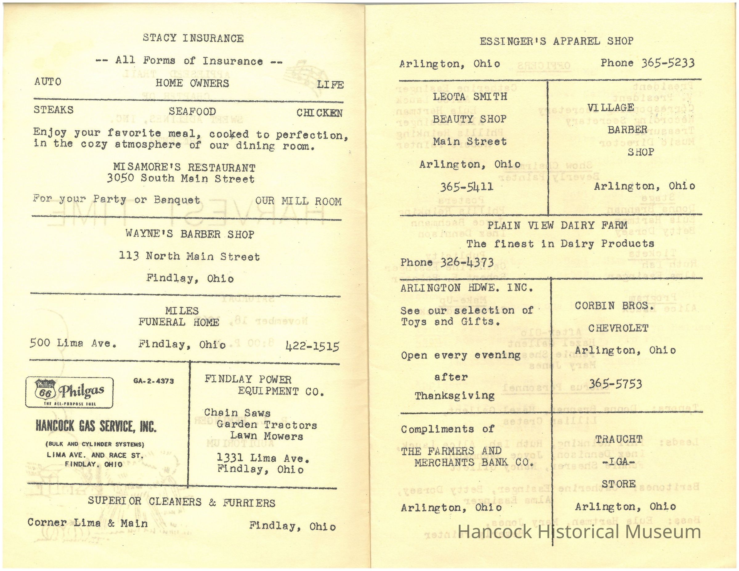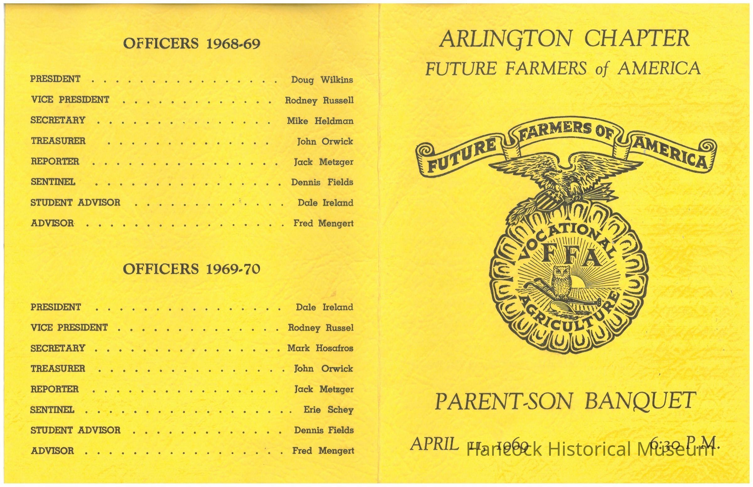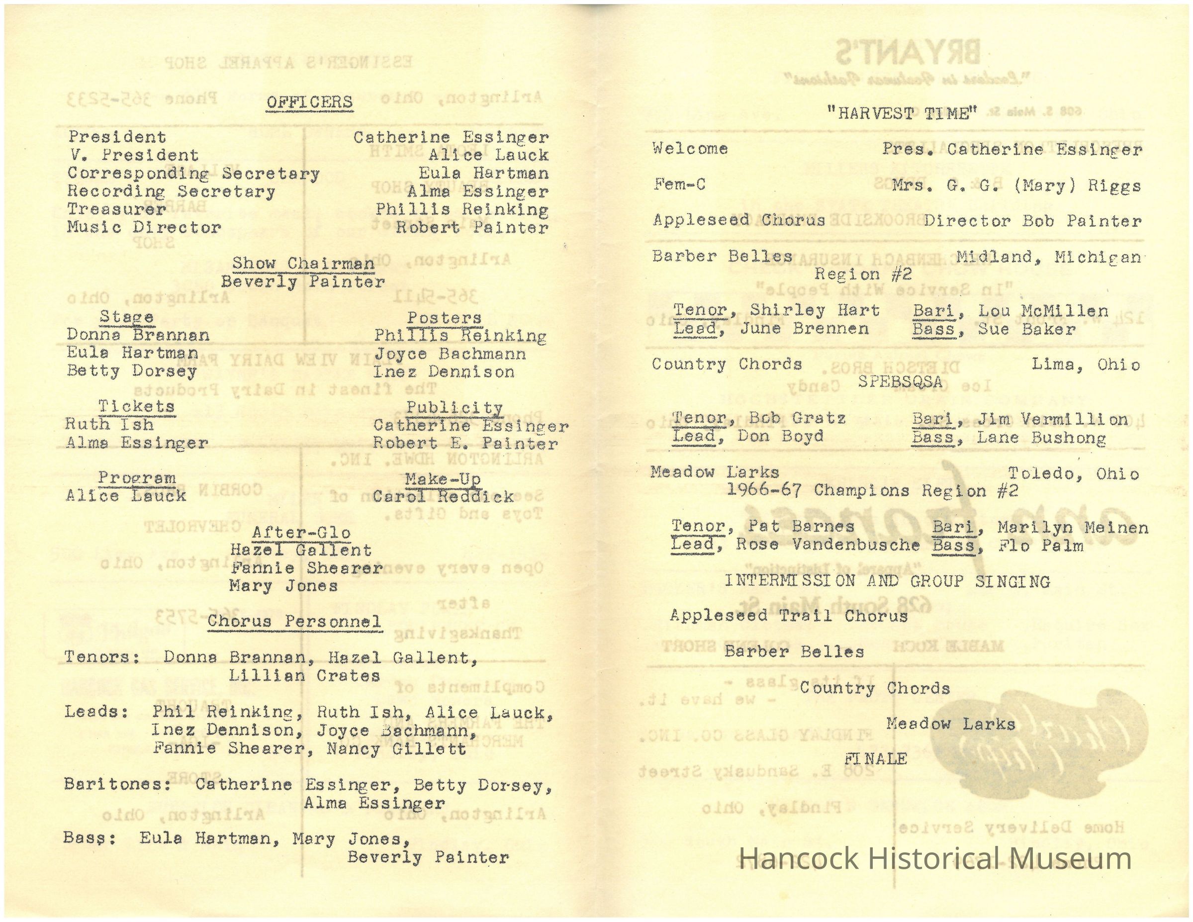 Band Uniform 1968 calendar, FFA Banquet April 11, 1969, Program Sweet Adeline's November 18, 1967Red Devils Football from the Blade 1970, Written notes regarding Alumni BanquetCollection