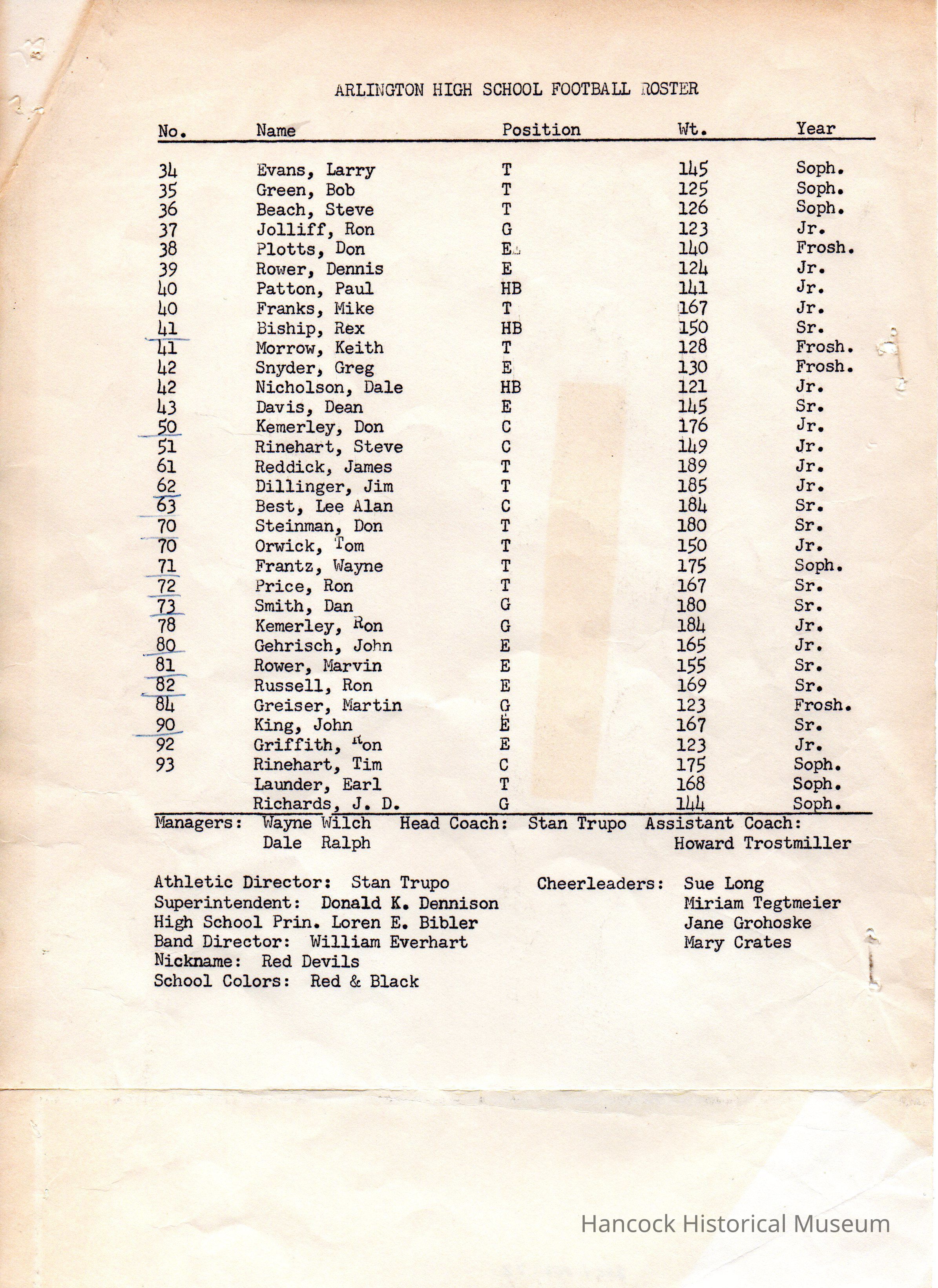 Arlington Football Homecoming Roster Jr, 1963Entry/Object ID