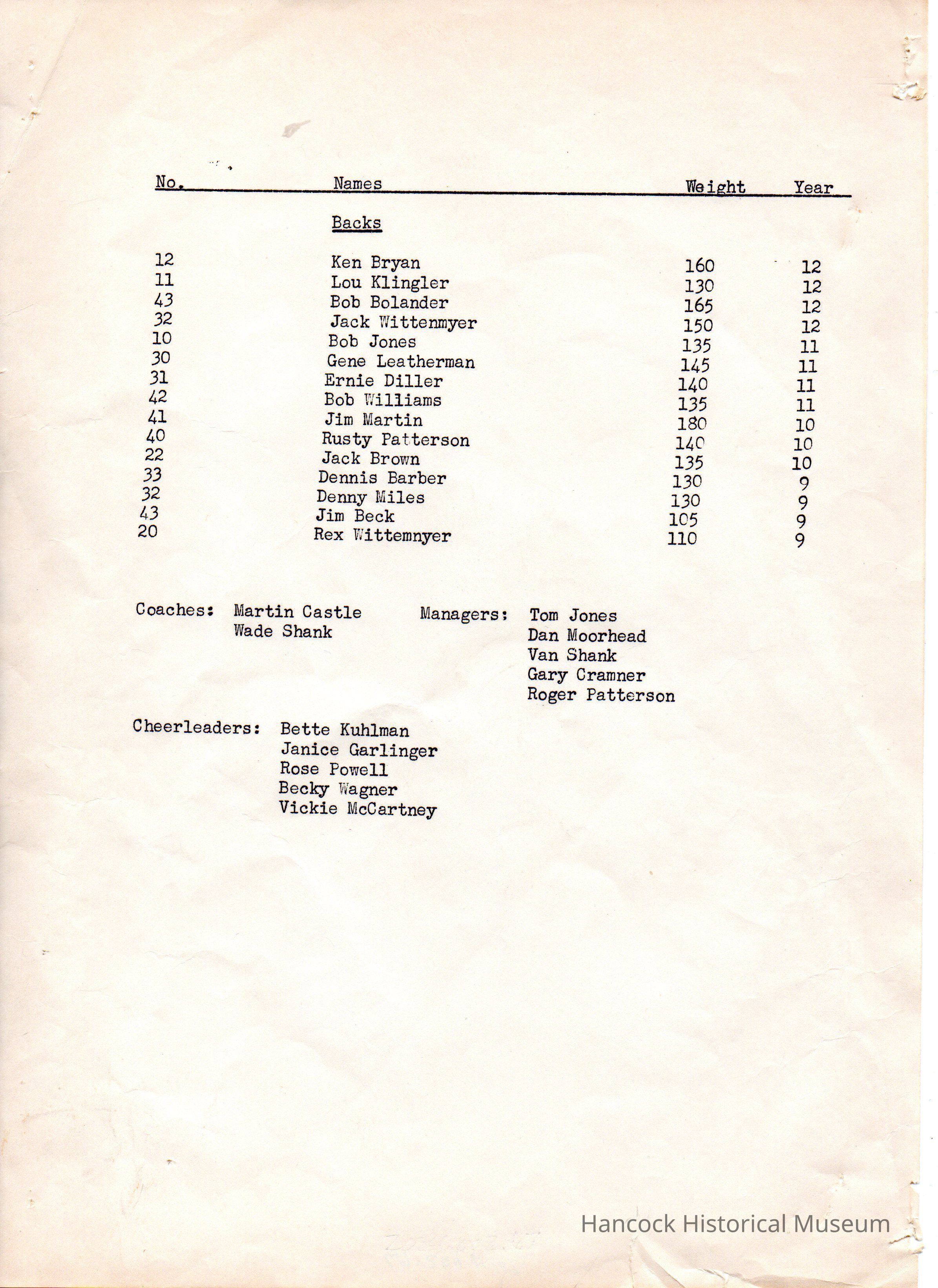 Arlington Football Homecoming Stats, 1963Entry/Object ID