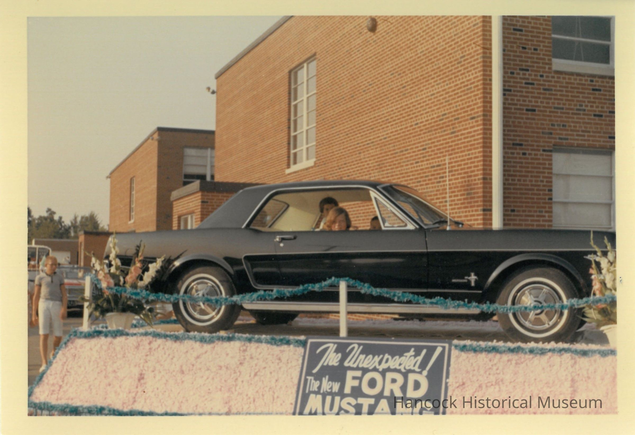 Color photograph of a Ford Mustang on a float in the Arlington Homecoming Parade July 1964