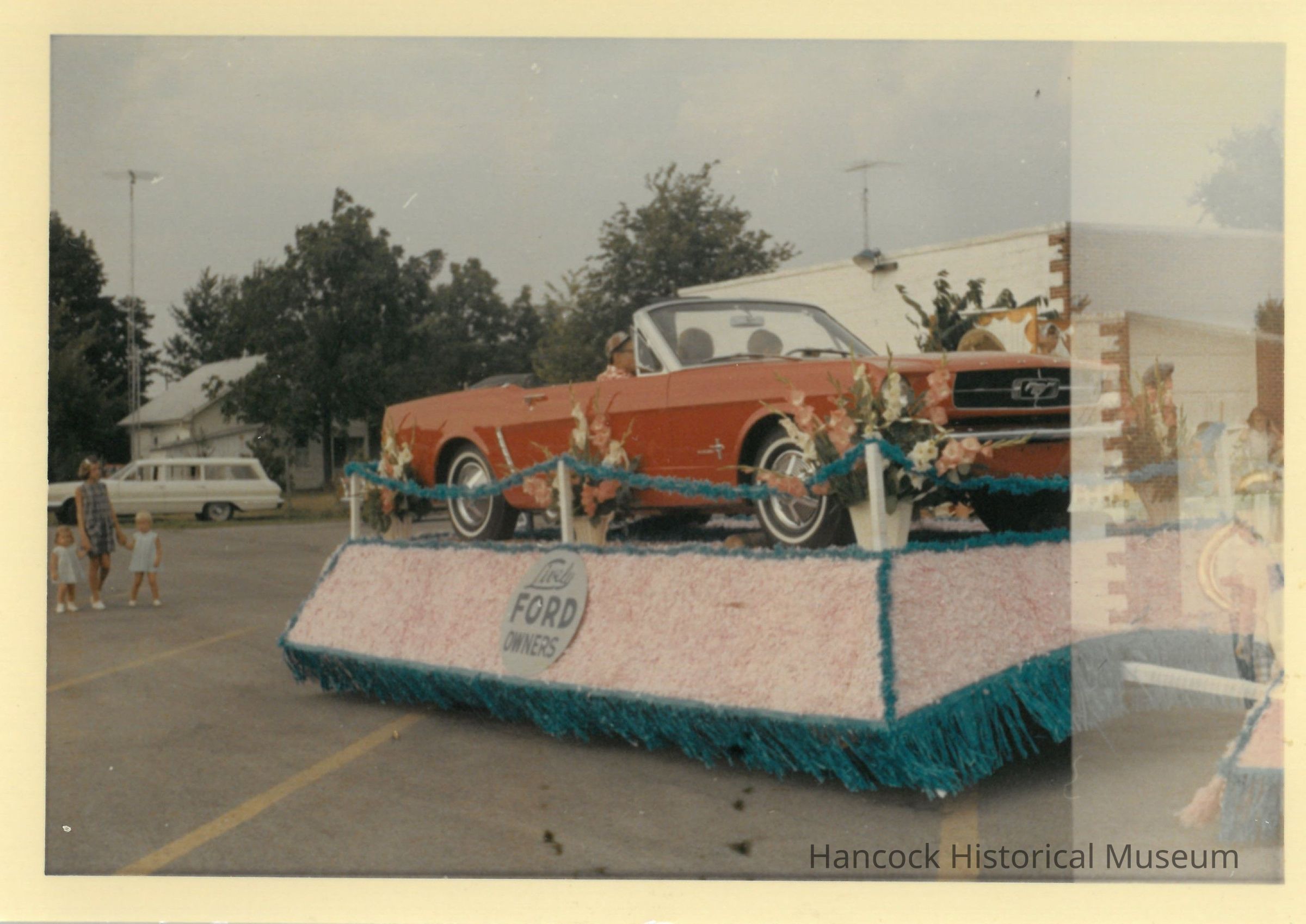 Color photograph of a Ford Mustang on a float in the Arlington Homecoming Parade July 1964