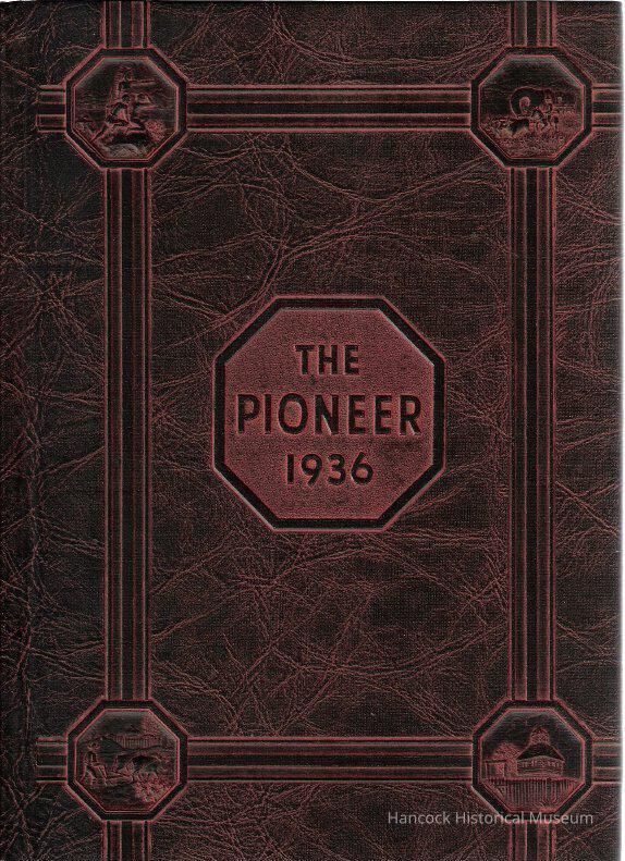 The Pioneer yearbook in reddish orange from Arlington Schools, Arlington, oh for 1936.