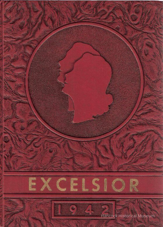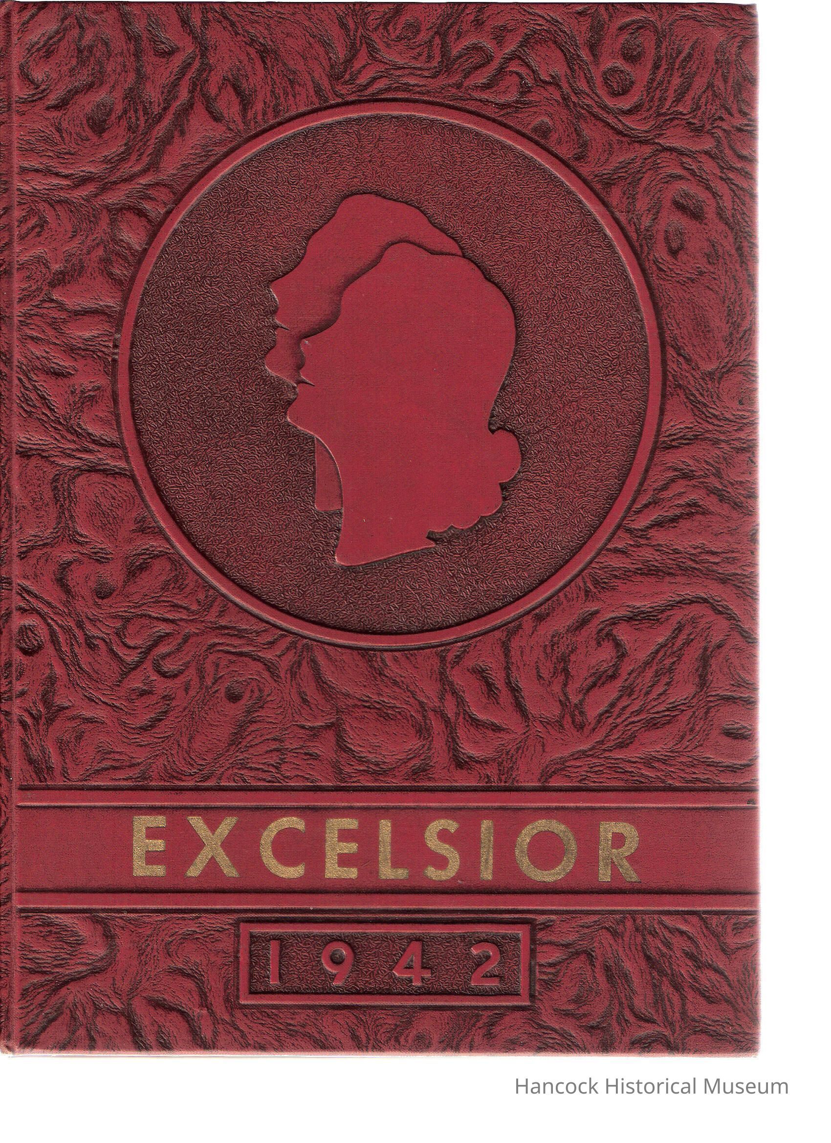 Excelsior yearbook in crimson from Arlington Schools, Arlington, oh for 1942.