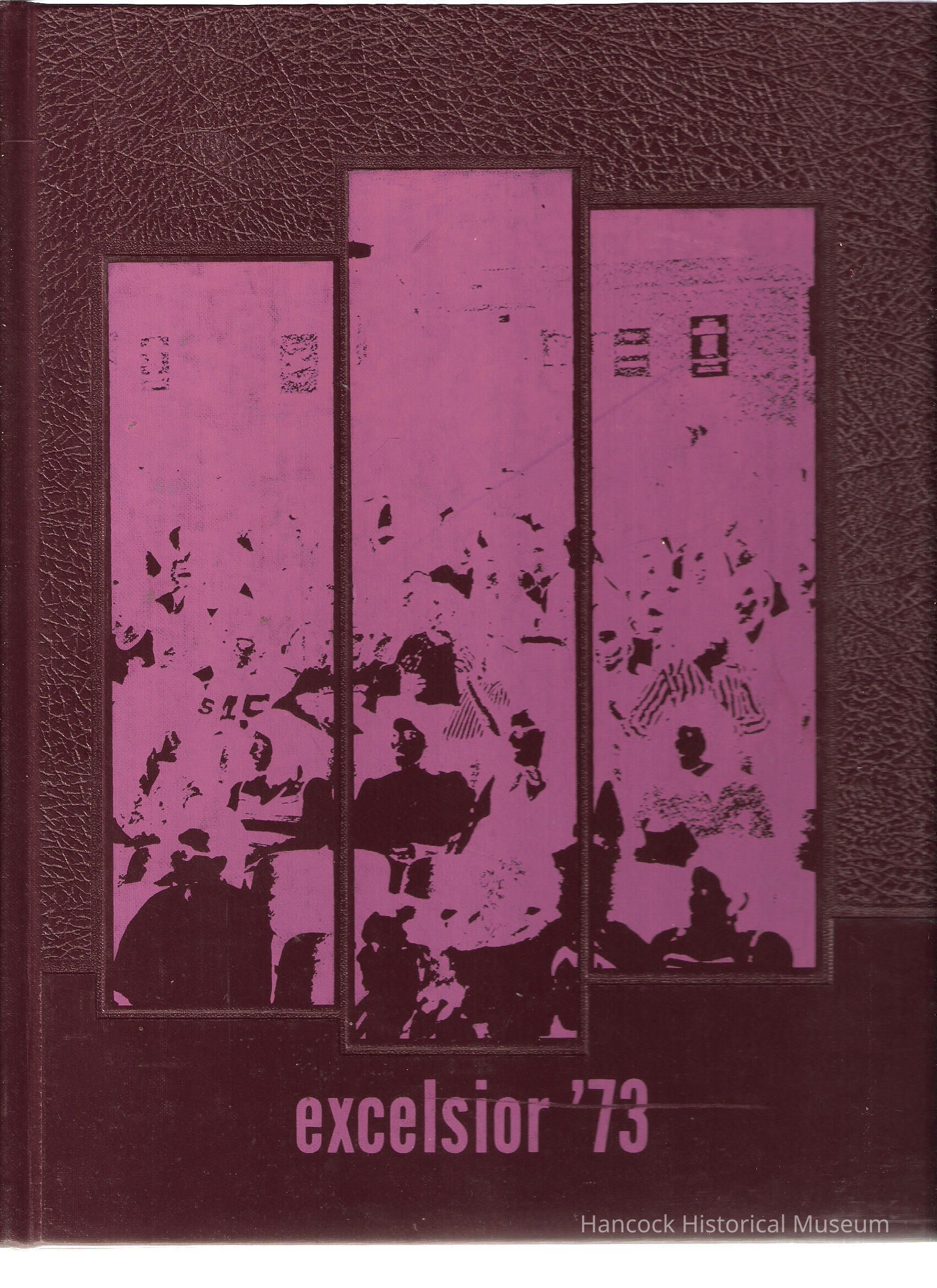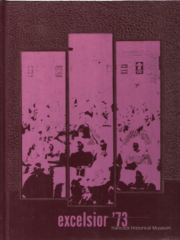 The Excelsior yearbook in mauve & pink from Arlington Schools, Arlington, oh for 1973.