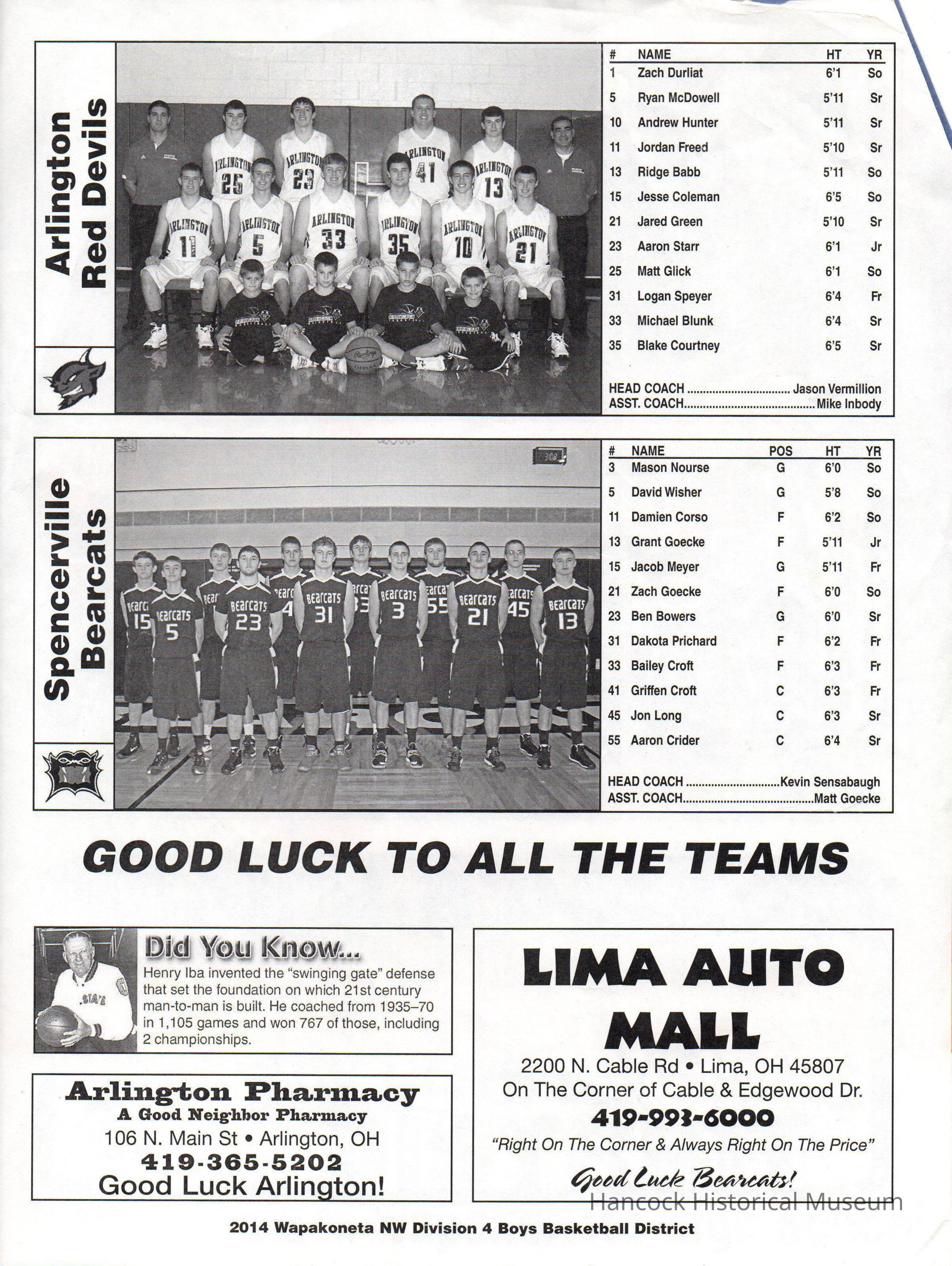 Arlington vs. Spencerville RostersEntry/Object ID