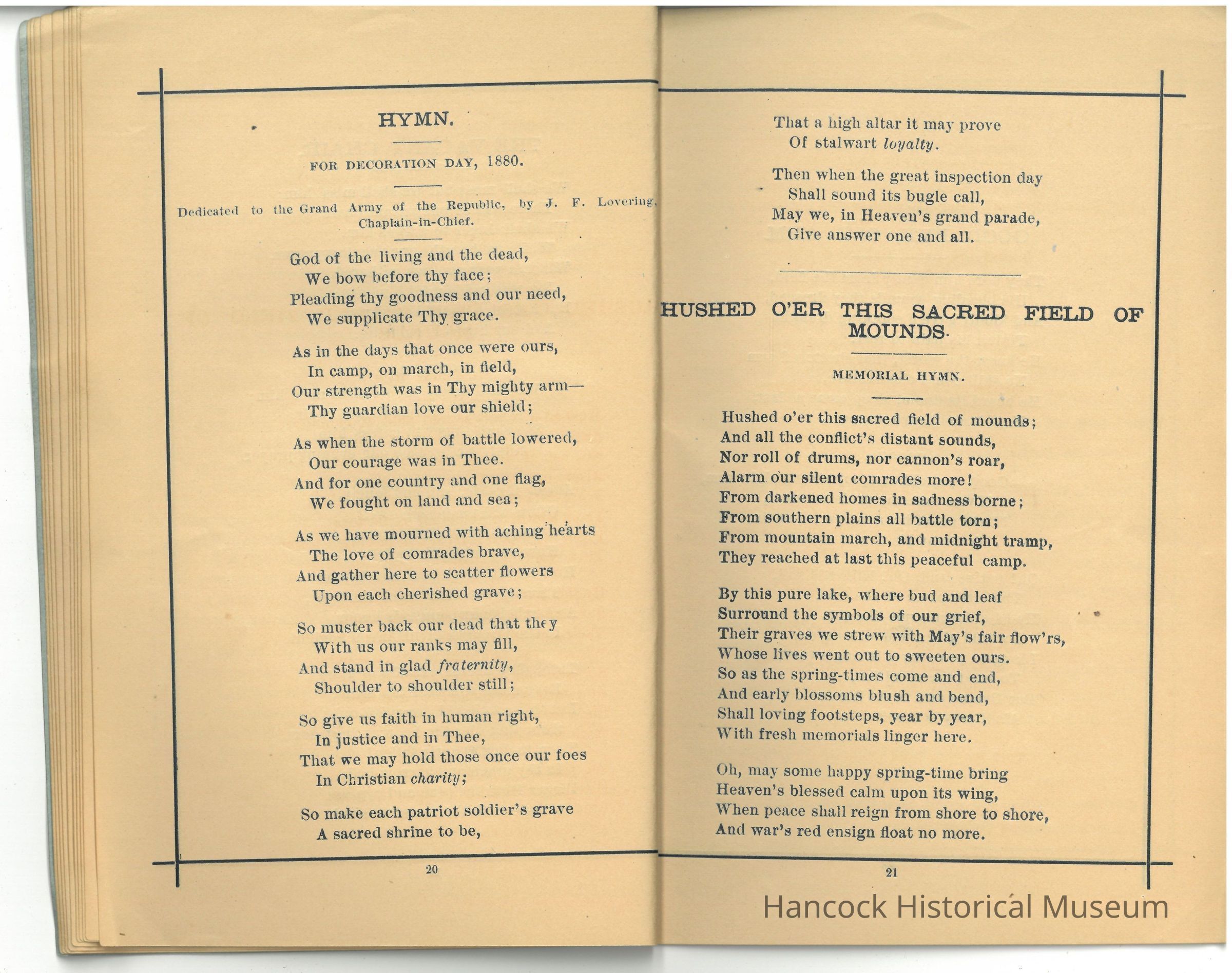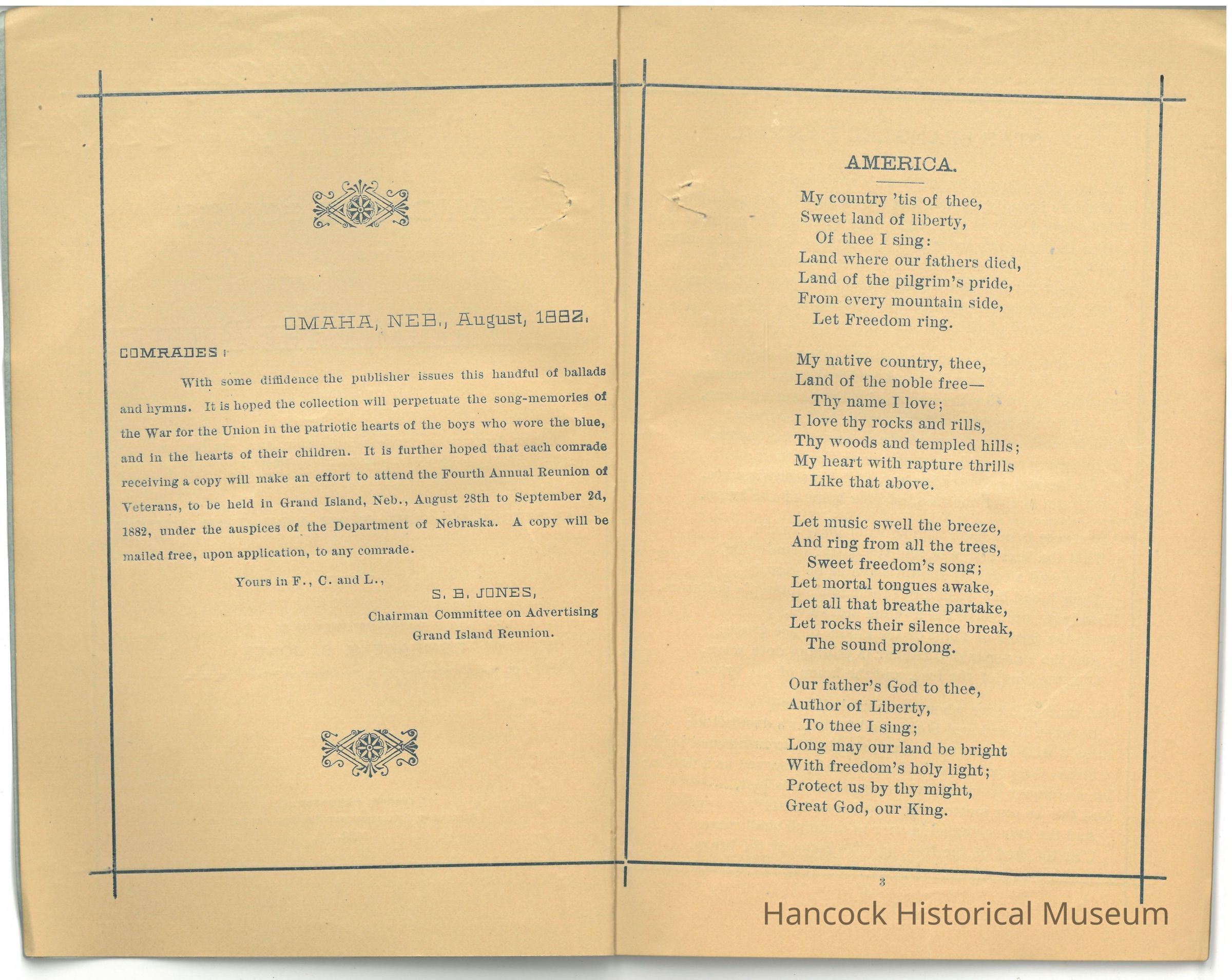 These collections were designed for campfire reunions and memorial services of the Union veterans who "wore the blue".Collection