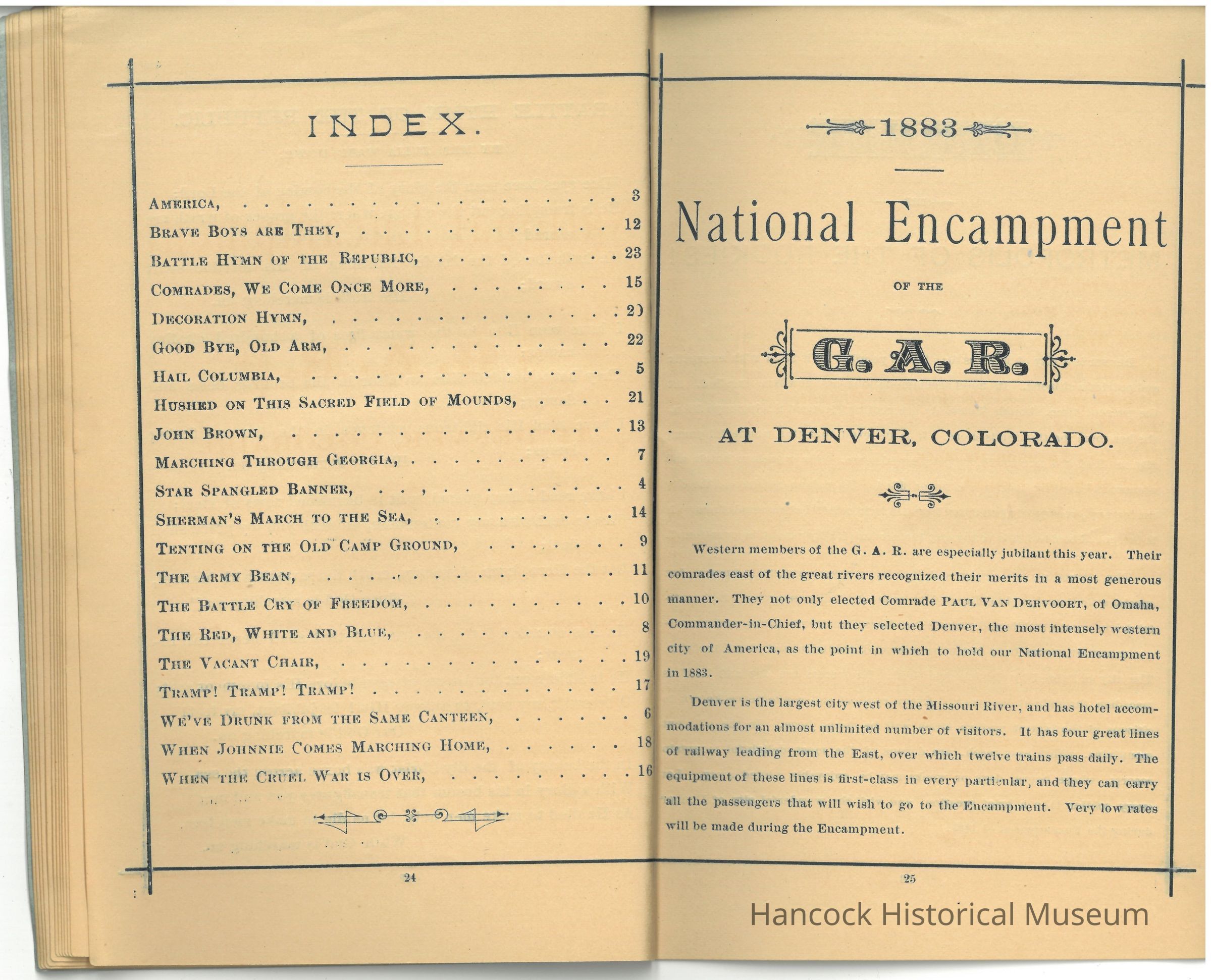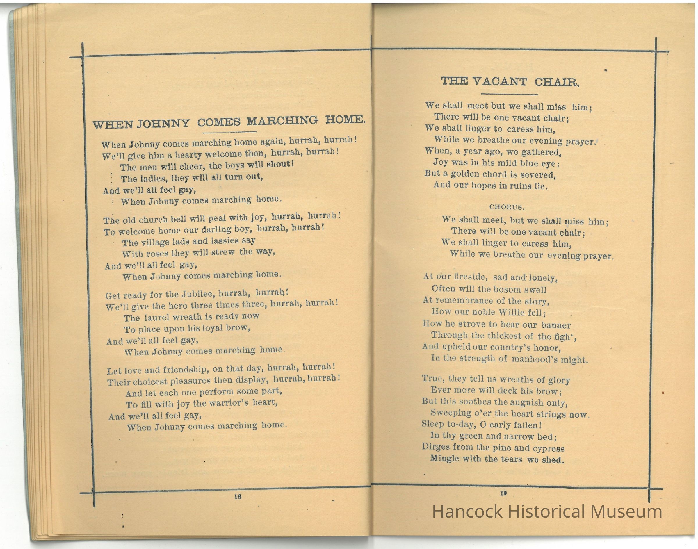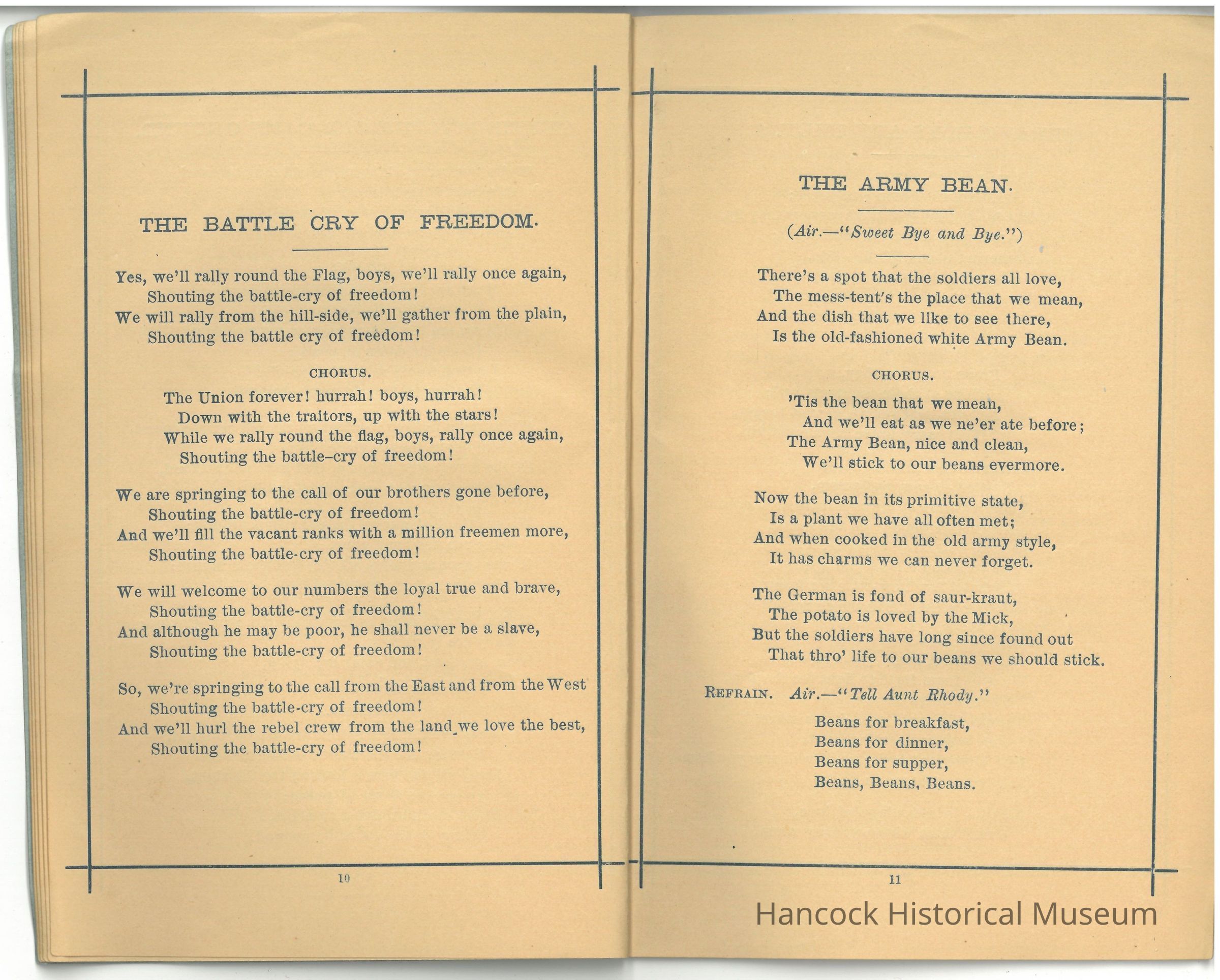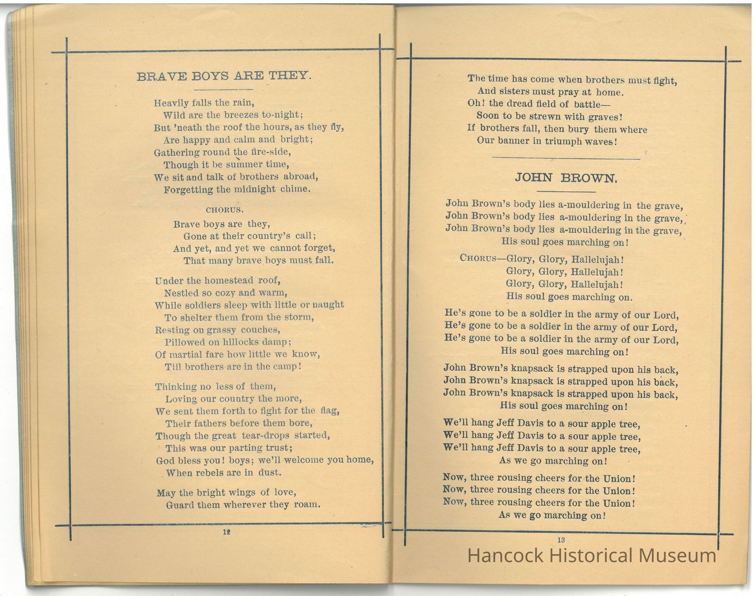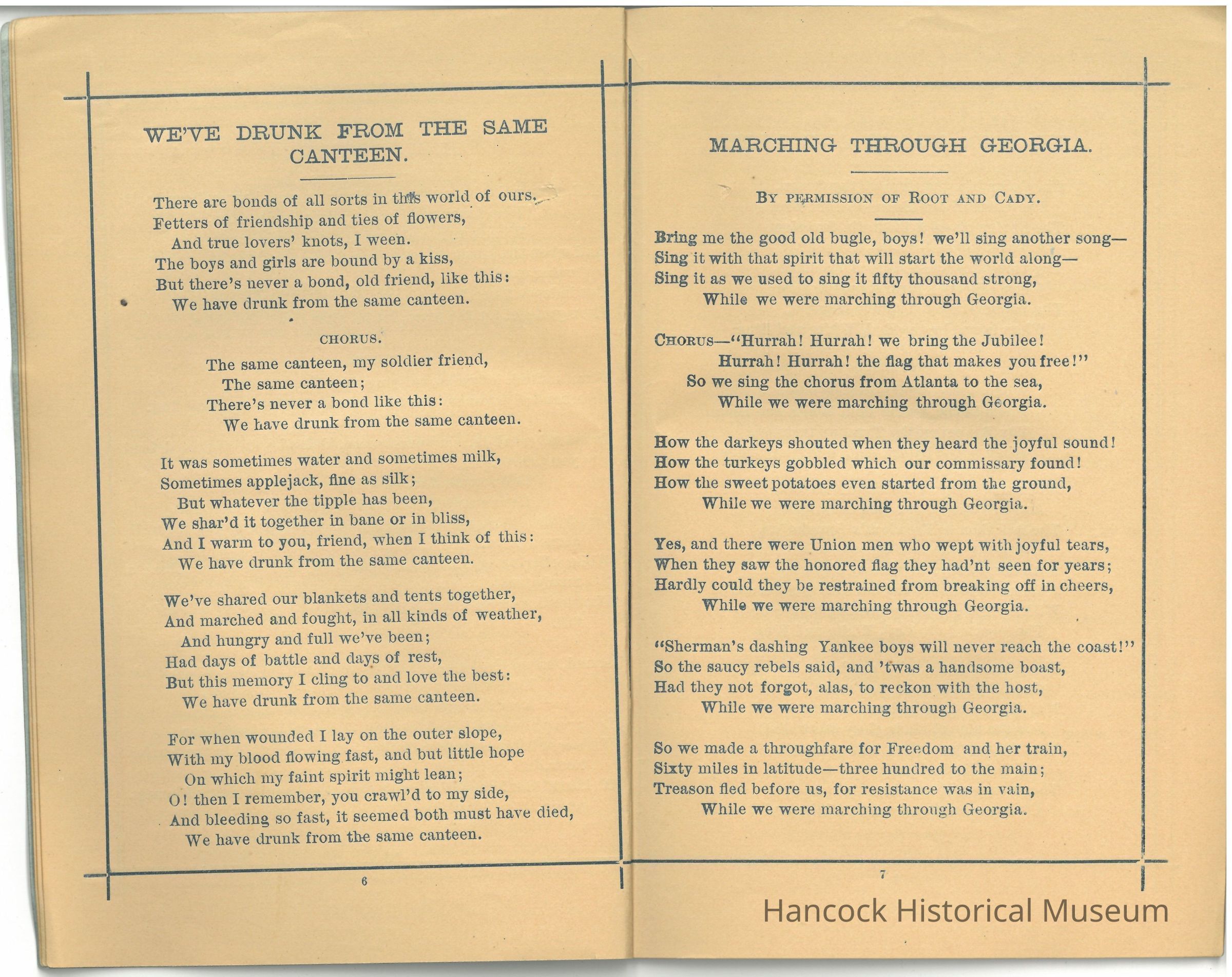 Commonly included songs in such GAR collections include: