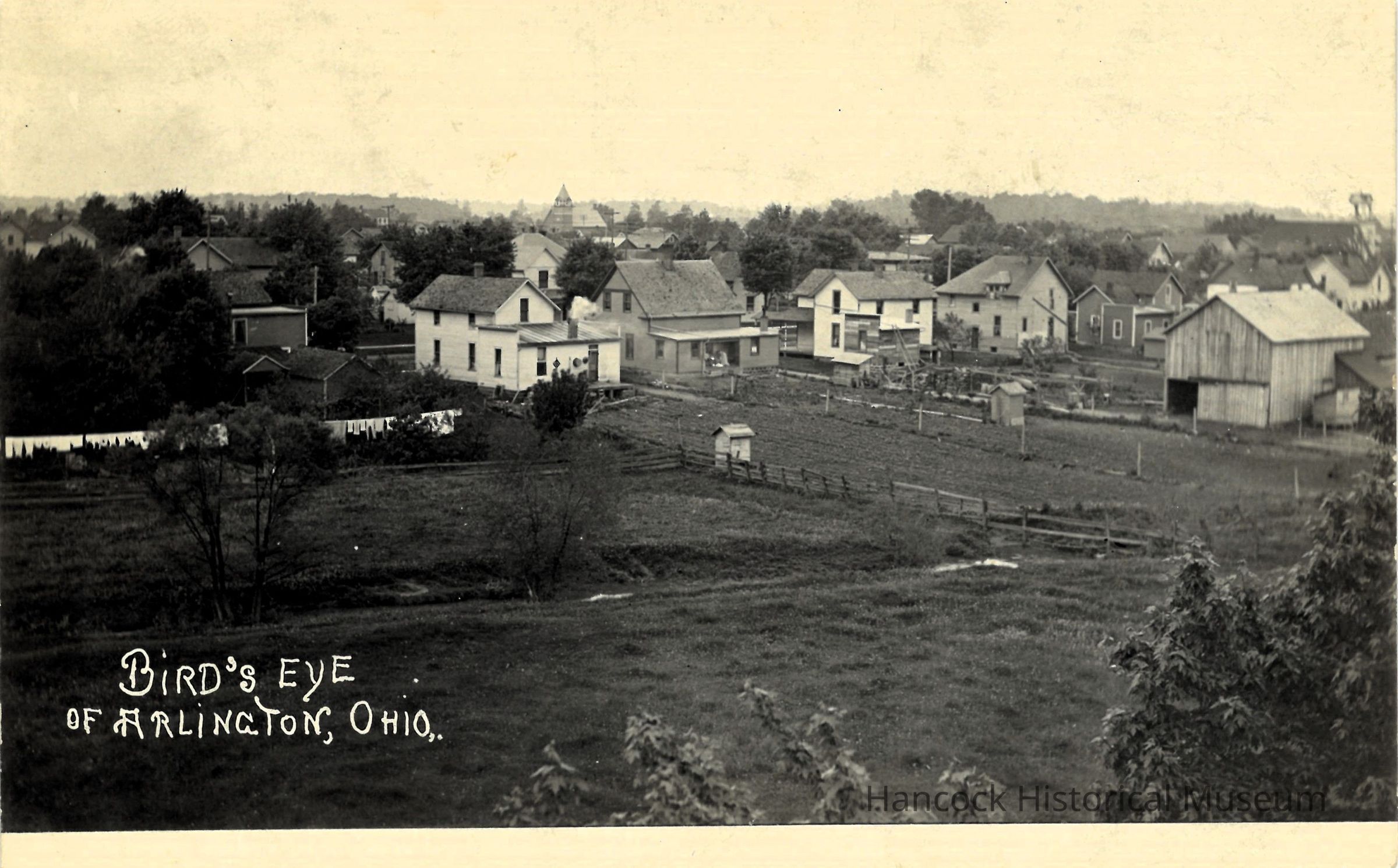photograph postcard of A birds eye view of Arlington, Ohio c1910