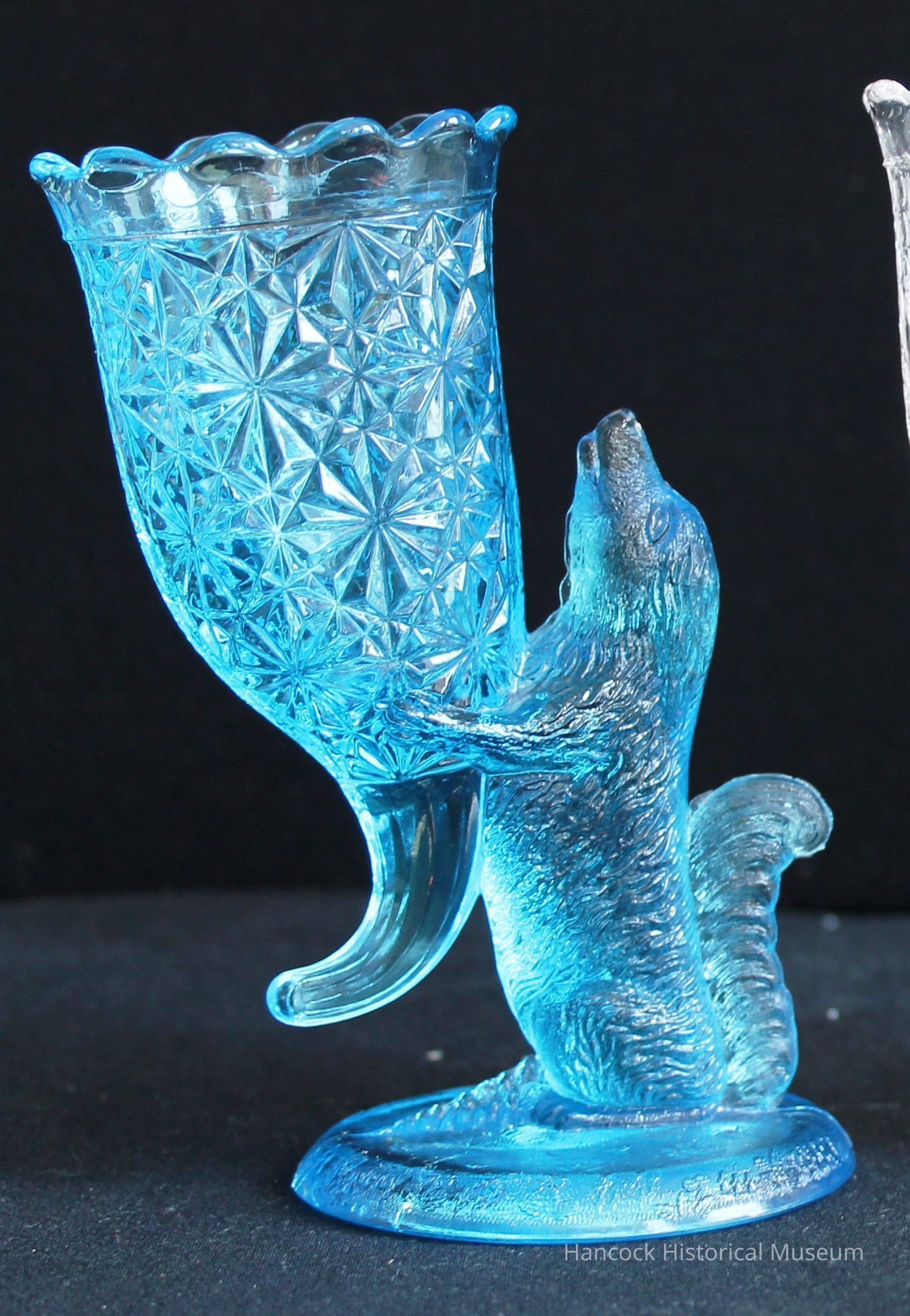6" blue glass dog vase from Columbia Glass Co, Findlay ,Oh.