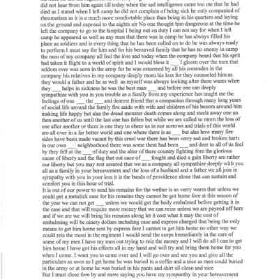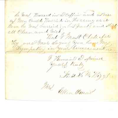 Civil War letter from S M Biggs to Ellen Oman about death of Her husband dated Aug 5, 1864.